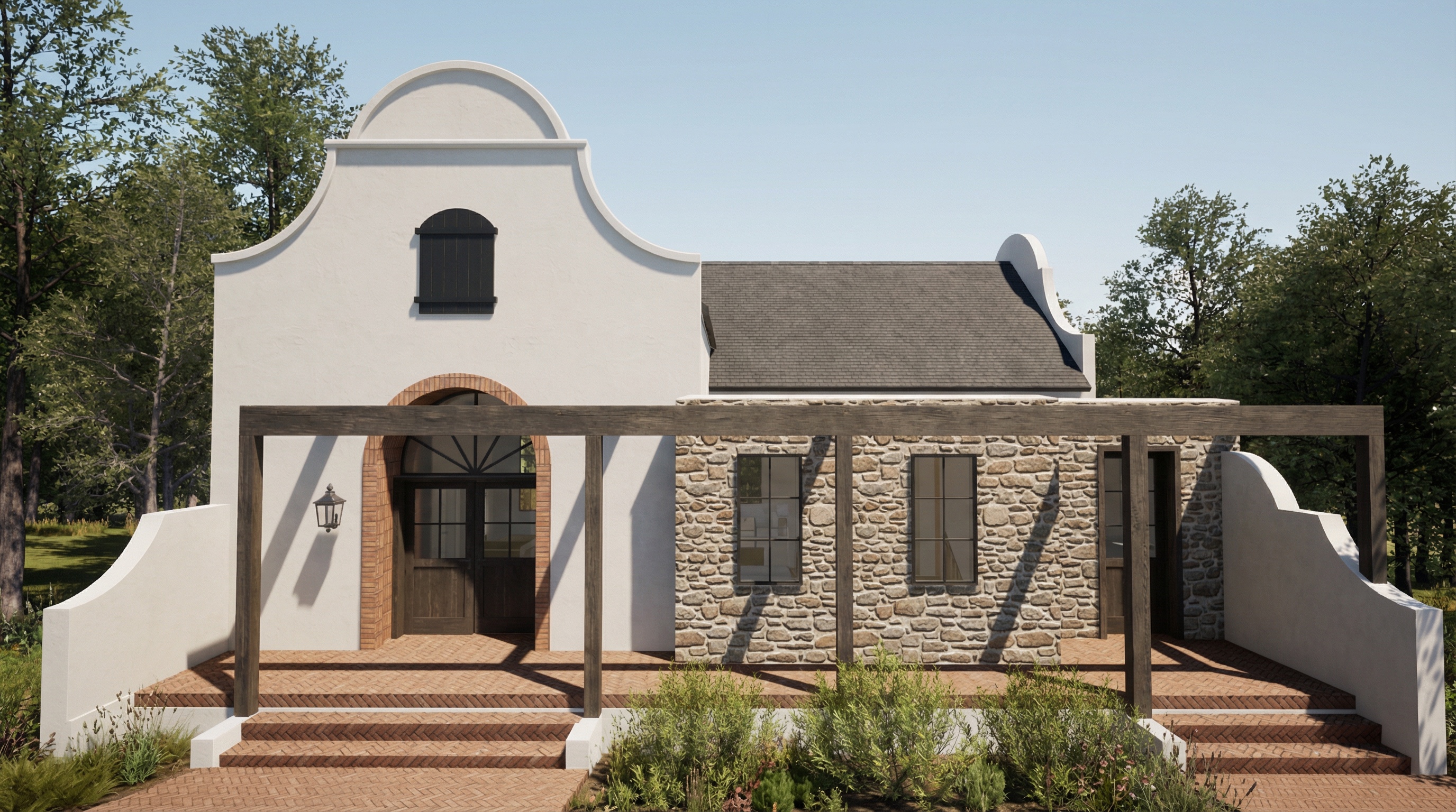 kengo kuma exterior shot redesign this home elevation to remove the mission alamo influence and reinterpret it in a timeless bobby mcalpine inspired architectural style eliminate the exaggerated curved parapet and stepped stucco massing replace with a more classical and restrained gable or hipped roof form with balanced proportions and subtle overhangs introduce refined european inspired detailing elegant cornice lines subtle eave depth and more harmonious roof to wall transitions simplify and soften the facade composition while maintaining architectural richness replace heavy mission curves with graceful understated classical geometry windows should feel taller and more vertical with refined trim depth and traditional proportions introduce symmetry or intentional asymmetry that feels composed and timeless rather than stylized materials should feel authentic and natural limewashed brick or softly toned stucco hand cut limestone or understated natural stone deep charcoal or bronze steel windows natural wood accents with quiet warmth roof should feel substantial and traditional slate aged cedar or dimensional shingle with depth and shadow lighting should be soft romantic late afternoon southern light overall mood timeless soulful restrained elegance european countryside influence refined southern architecture avoid mediterranean mission styling avoid exaggerated curves avoid decorative historic mimicry focus on quiet luxury and architectural poetry architecture