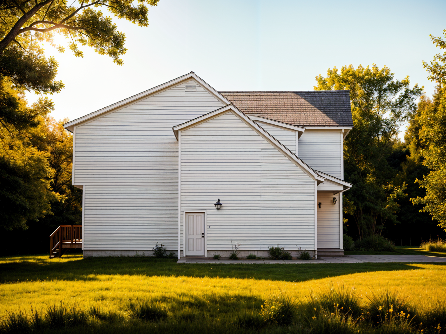 new white siding jsut grass no trees