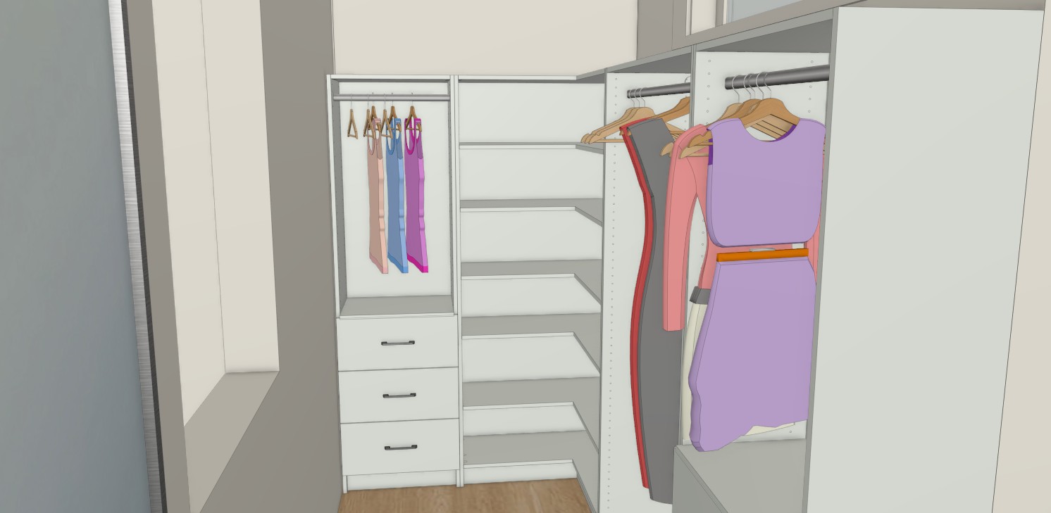 do this as a walk in wardrobe in a light pastel pink make it look as real as possible