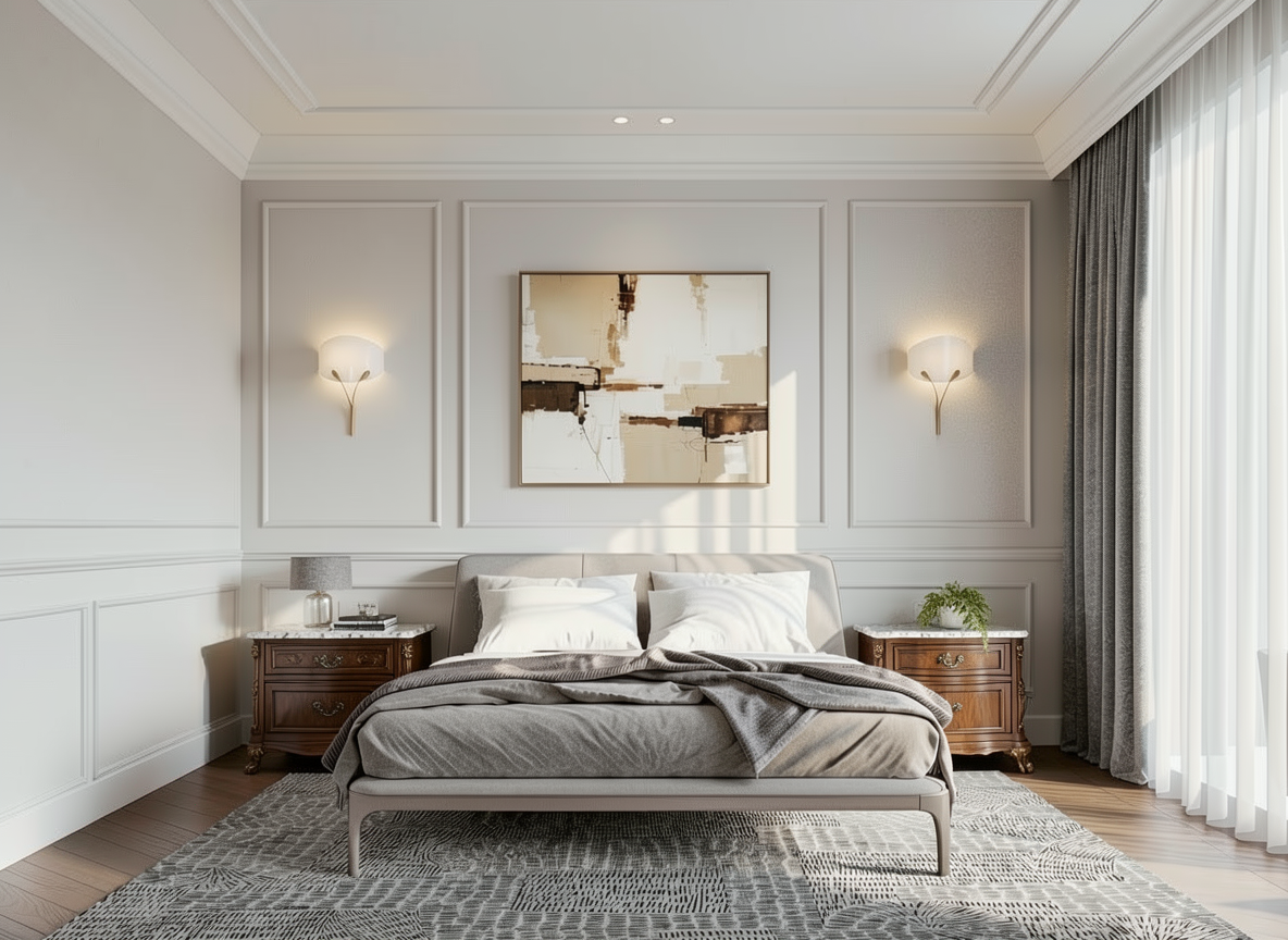render a charming english countryside house set during a serene afternoon the house features rustic stone walls with a warm earthy beige color and dark frames around large windows the roof has classic reddish brown tiles the sky is a soft gradient of pale blue and light gray conveying a calm and peaceful atmosphere the surrounding area includes a vibrant green grass lawn and a dark slate gray pathway add subtle shadows for depth and emphasize the cozy inviting ambiance