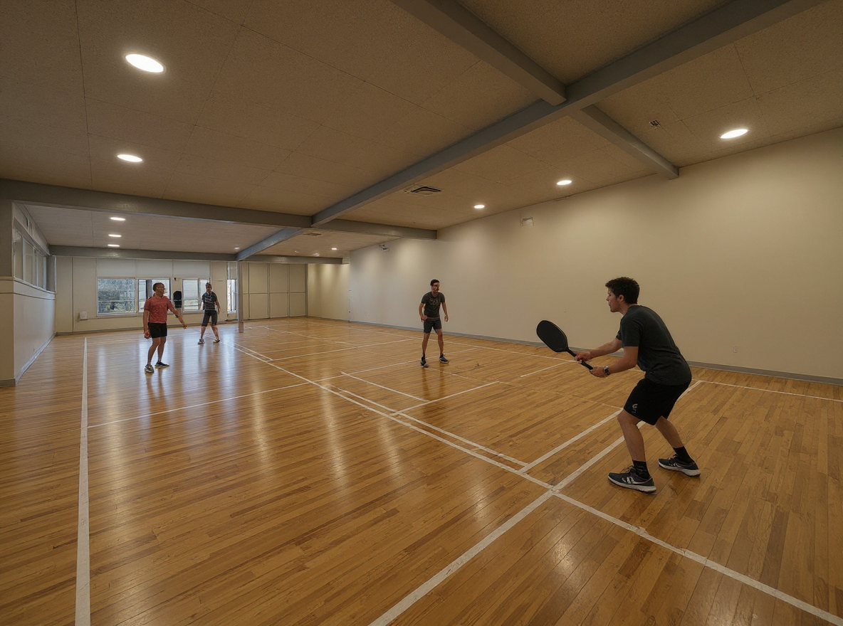 a fun space for people to play indoor pickleball maintain as much of the images structures as possible
