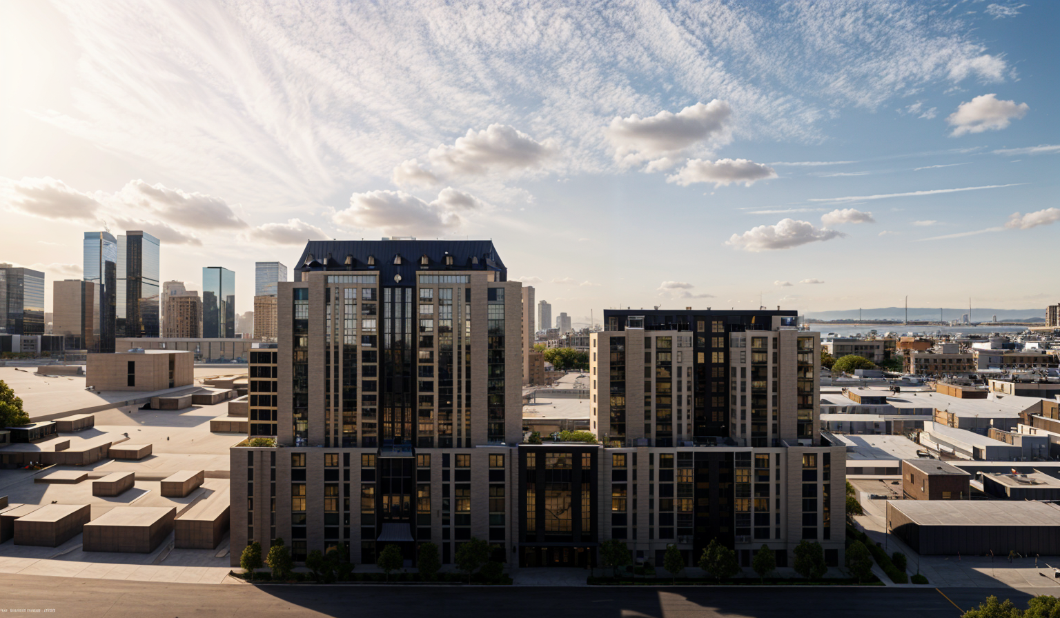 add some trees in the surrounding buildings