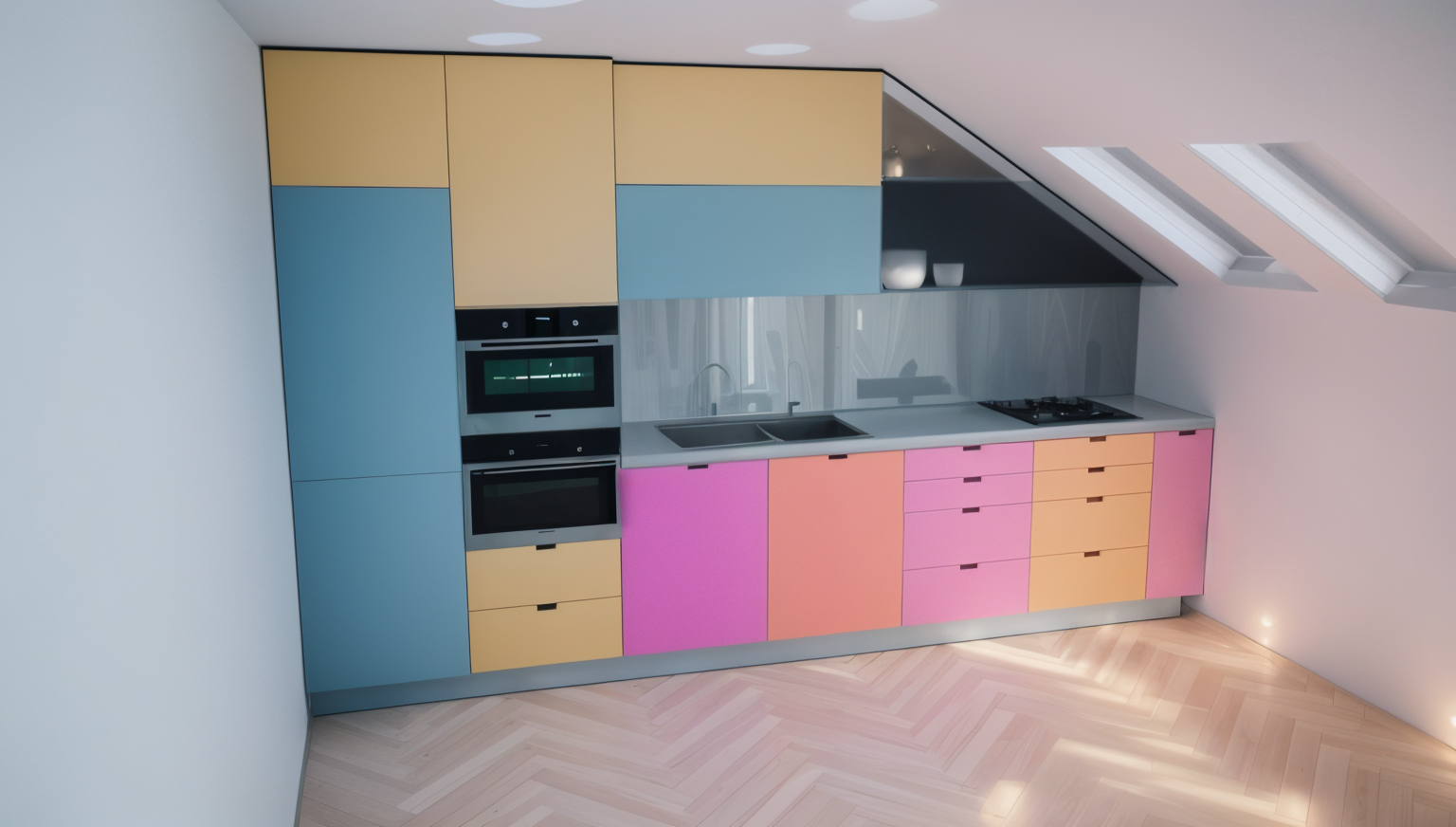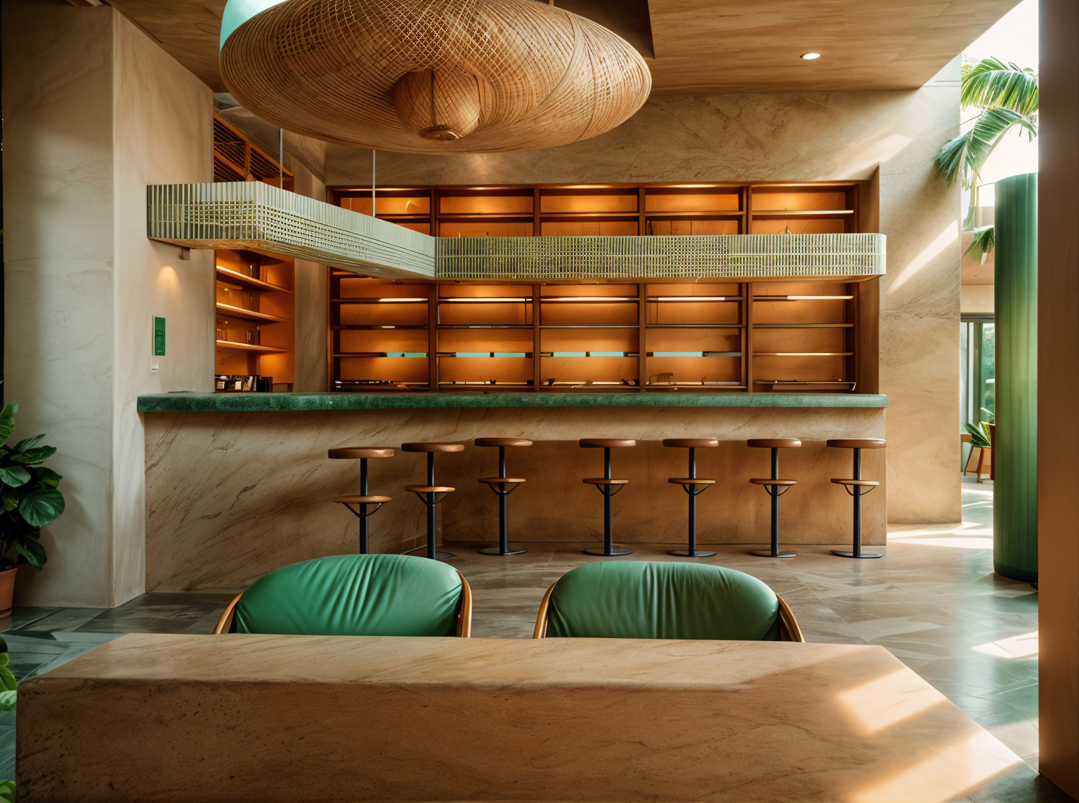transform this mood board into a highly realistic 3d visualization of an office the final render should capture the essence of the mood board including color palette textures furniture styles and lighting while ensuring photorealistic details such as accurate material reflections natural shadows and lifelike decor elements save the exact furniture from the designboard put vertical beige acoustic panels behind the tv