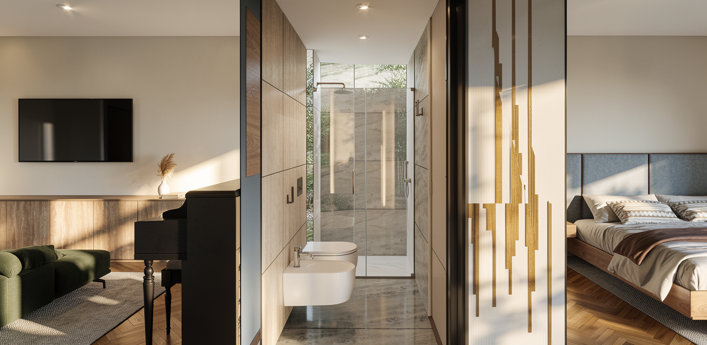 make fotorealistic render dont change details calm natural materials and warm light jasne ciany to tapeta lniana jasnobe owa ciep a elementy takie jak okap nad wysp jest miedziany szczotkowany matowy dola cz cylindra okapu drobnie ryflowana lampy nad sto em te miedziane szczotkowane bardziej matowe a nie wiec ce p yta indukcyjna na wyspie ma by bia a dywan zr b ja niejszy ni jest w kolorystyce bezowej jasnej z ma ym dodatkiem zieleni jak najlepiej oddaj tekstury widoczne na oryginalnym obrazku kanapa jest jasno bezowa mietankowa zr b toch jasniejsz ni jest sztukaterie na cianach przy stole jadalnianym maj by zielone w kolorze cian a kinkiety bia e matowe klamka do drzwi bia ych w g bi ma by miedziana drzwi szklane w g bi ramki maj by bia e klamki drzwi przy zas onach i rolecie bia e roleta przy kuchni bia a o wietlenie w kuchni i nad kanapa ma by bia e i jest to szyna podtynkowa minimalistyczna roleta na drzwiach ciana z zas on ma by bia a jak sufit nie dodawaj pod wietle kinkiet w i o wietlenia nie zmieniaj detali odwzoruj je tak jak na orginalnym obrazku