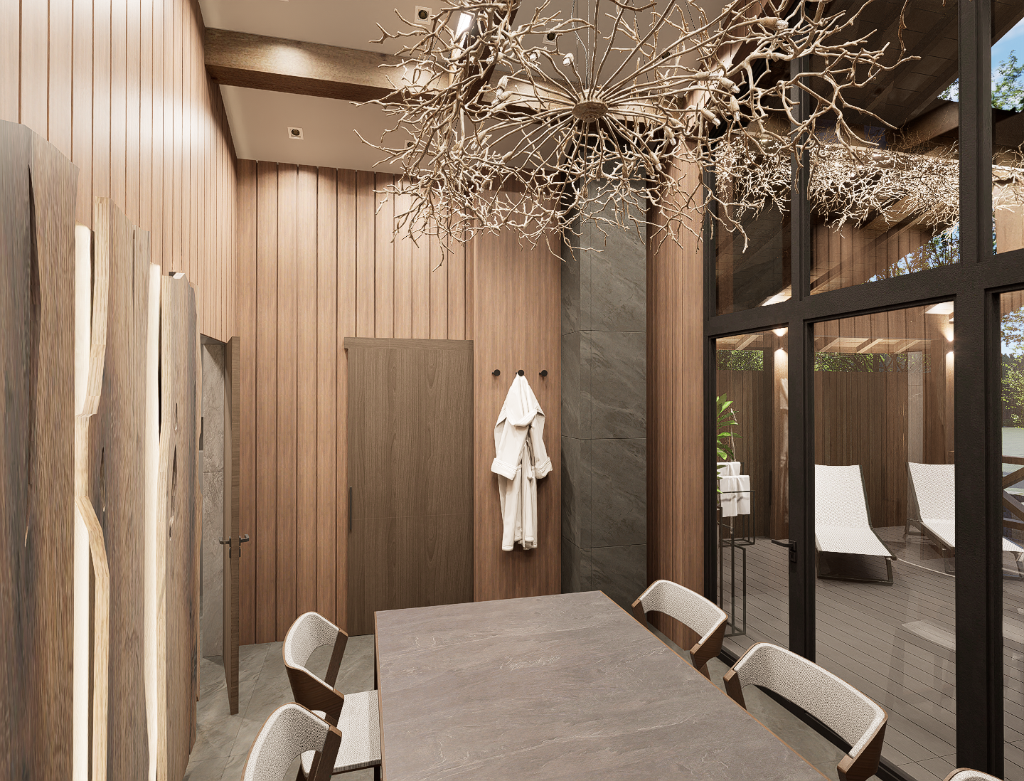 a hyper realistic visualization created from a sketch don t change the placement of objects or add anything the textures are modern and minimalist don t change the texture placement on surfaces make them realistic realistic shadows ultra realistic architectural photography cozy atmosphere hd resolution