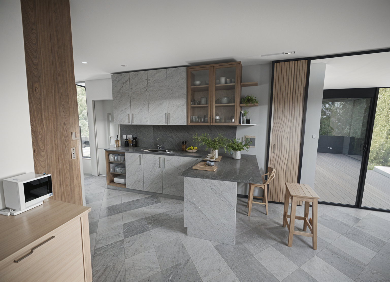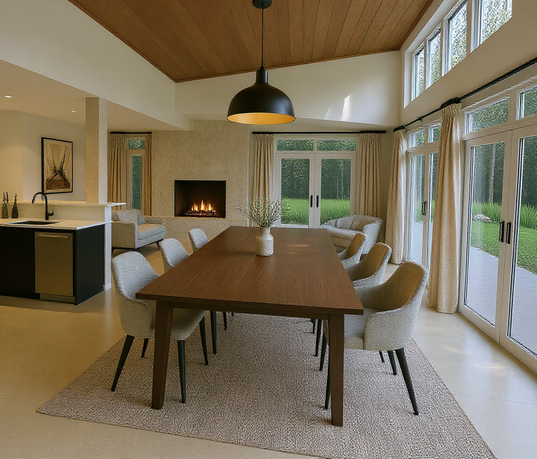 exterior shot create a photo realistic 3d rendering the brick is reddish brown the stone is austin white limestone landscaping should resemble plants found in north text i need the image to be 16 9 aspect ratio architecture