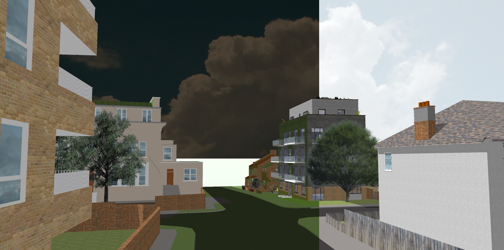 daytime south london residential street scene with a few cars people and even coloured blue sky