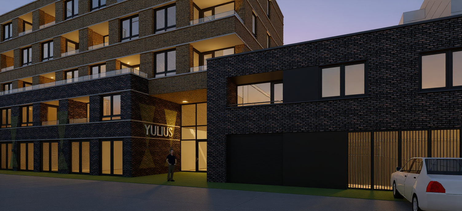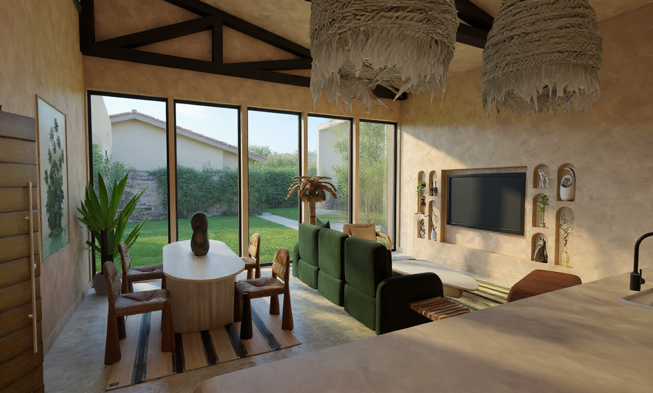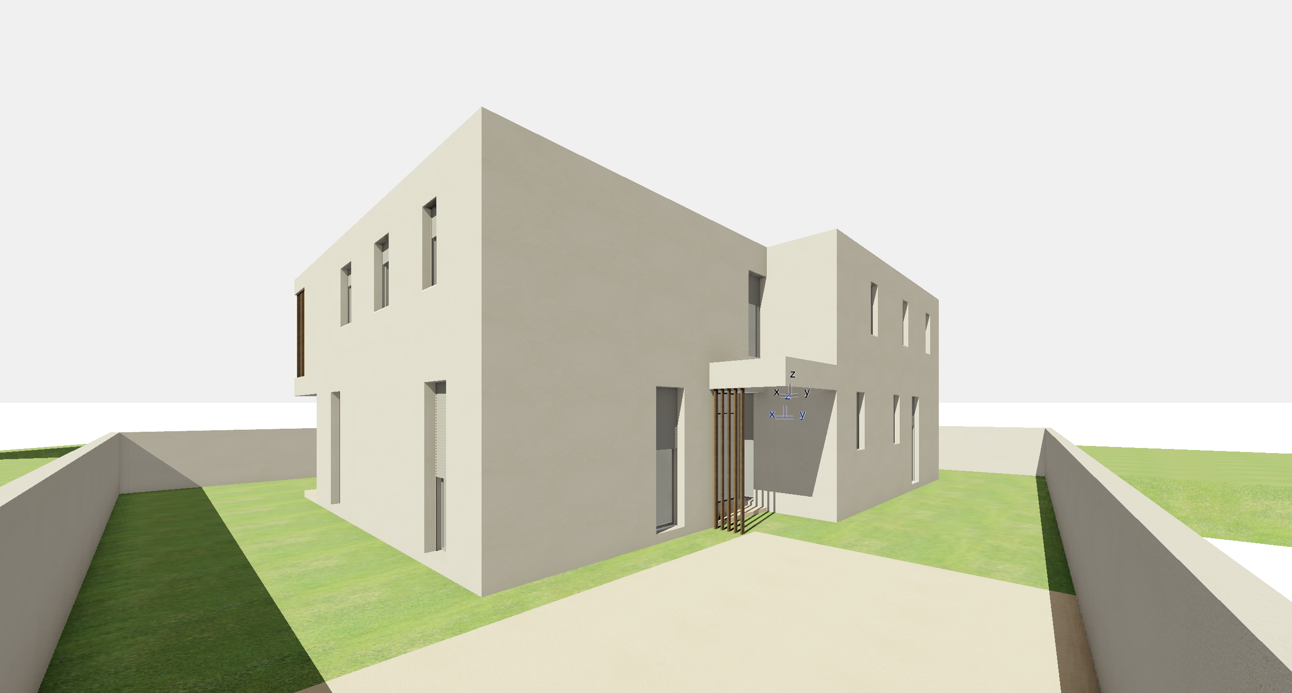 reflects on the windows mediterranean trees and villas in the background lot of sun