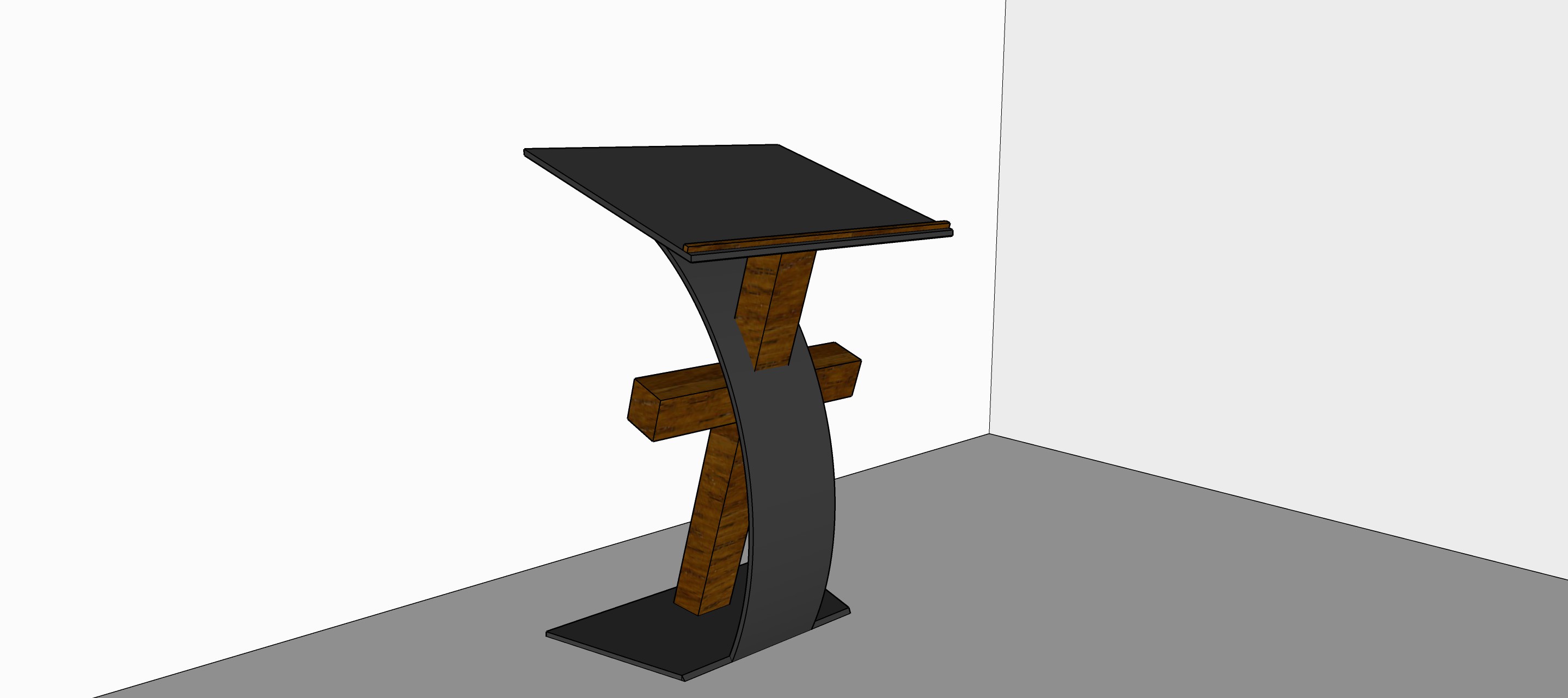 charcoal painted steel with deep wood tones cross the desk top is in the charcoal painted steel
