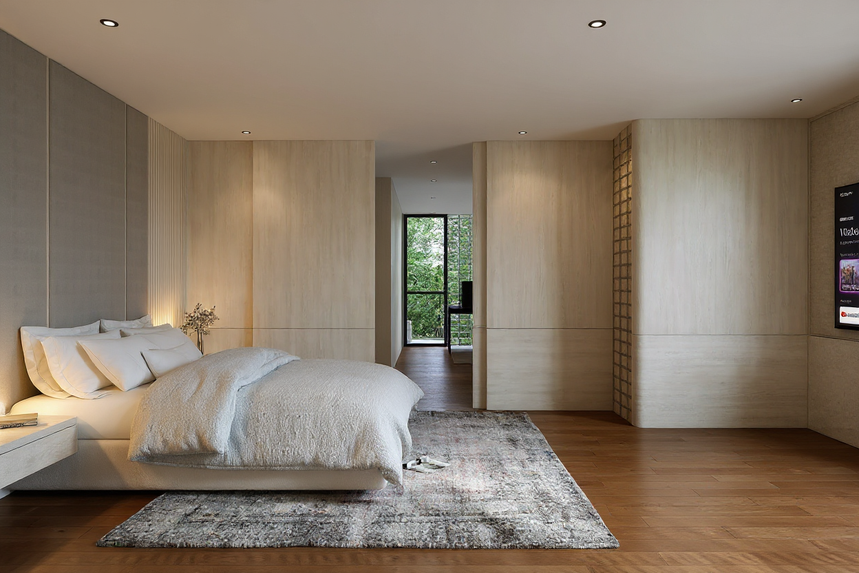 3000k light for the interior and put small armchair at the left corner infront of glass brick tv feature wall become marble