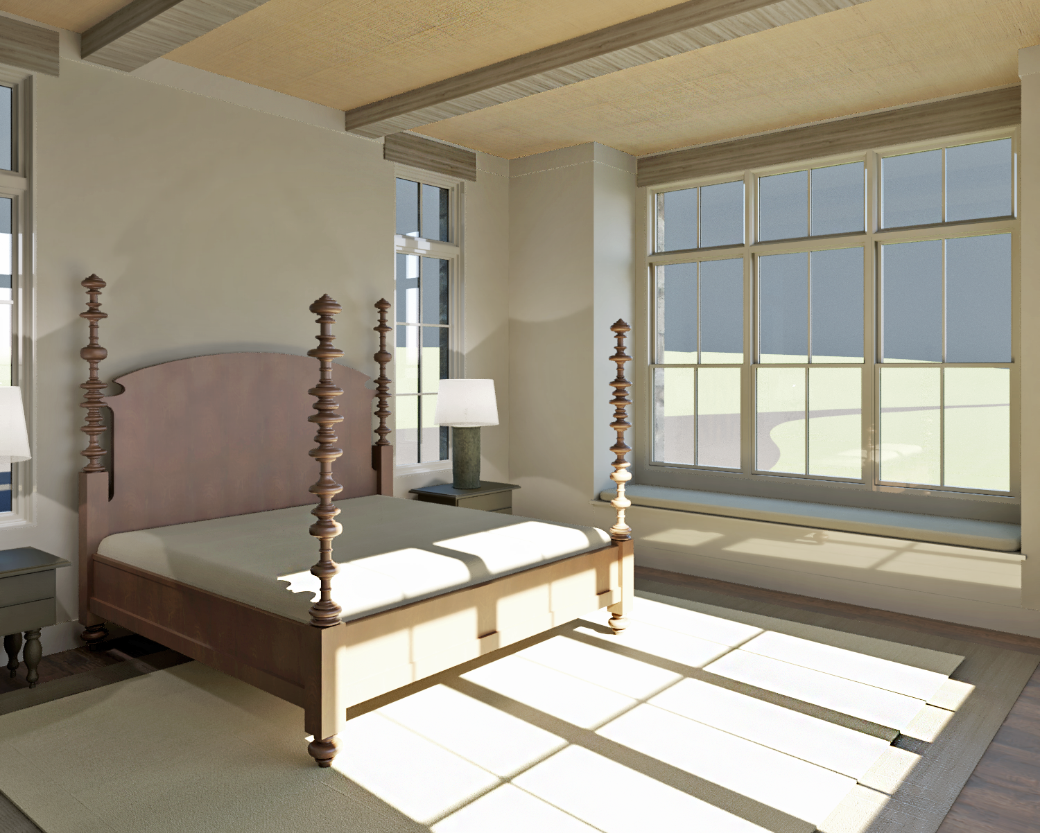 keep existing materials contemporary french country inspiration northwoods midwest outside of windows neutral bedroom furniture remains as existing grasscloth wallpaper on ceiling no mountains outside