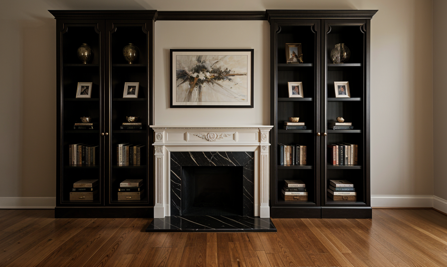 make the outer shelves on each size more shallow than the ones right next to the fireplace