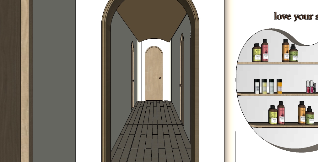 create ultra realistic images without changing any structure shape design or materials do not resize jpegs beige wood vinyl flooring off white walls beige wall panels mirror shelf backsplash