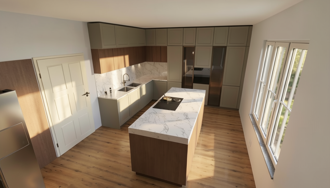 make this render more realistic add lights add humans change to wood floor remove the chair architecture