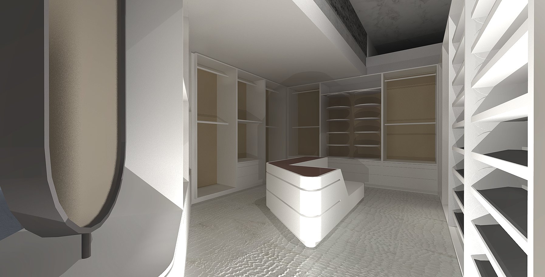 add expensive couture fashion clothing in the closets and a fendi purse on the island