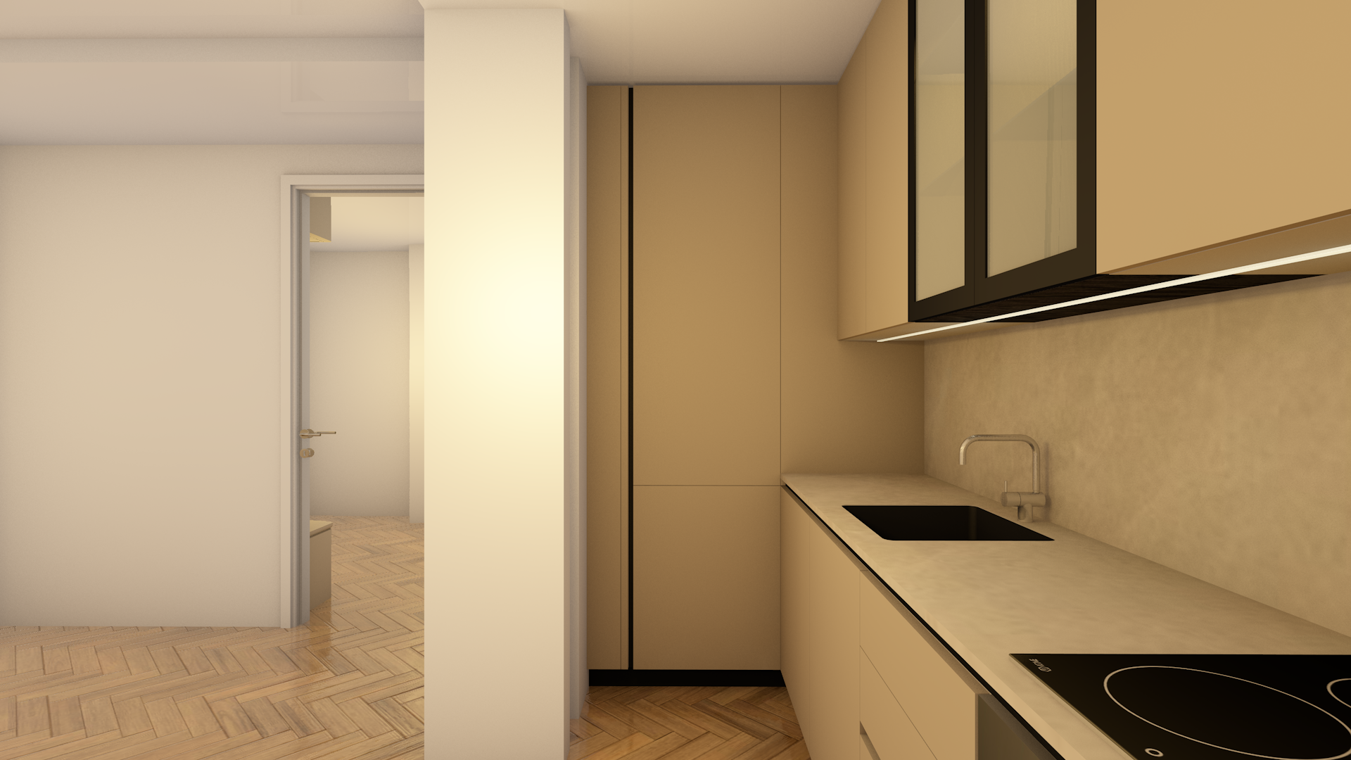 minimalist soft colors add led lights and kitchen accessories add glasses on the glass cabinets