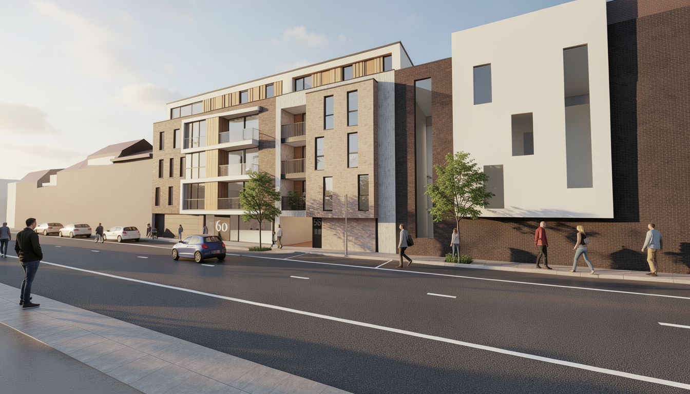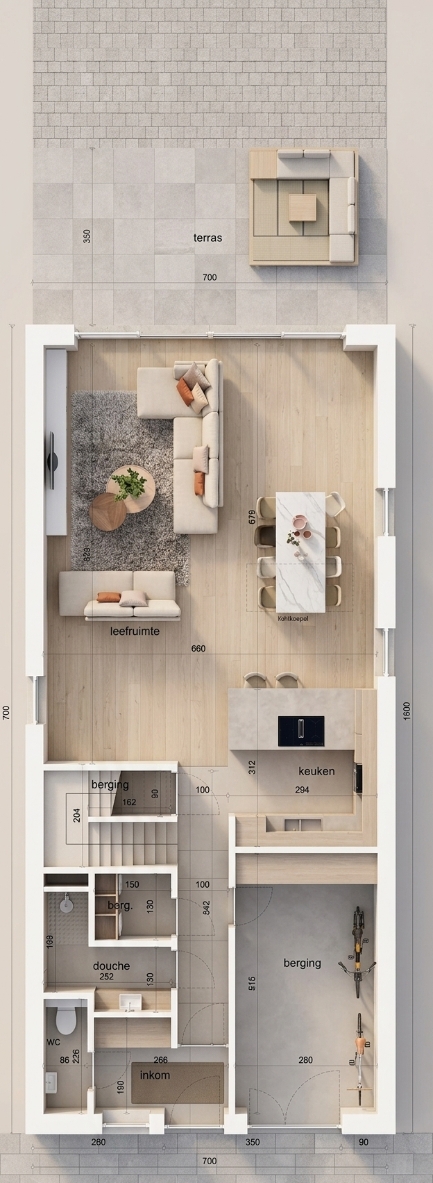 a realistic interior render of a small blood drawing clinic and laboratory maintaining the exact architectural layout with aligned partitioned cubicles and central circulation white walls with slight tonal variation and subtle imperfections brushed stainless steel trims on partitions and clean but slightly worn beige ceramic tile flooring with visible grout each cubicle contains a realistic phlebotomy chair in blue upholstery with minor fabric texture and wear integrated armrests and adjustable components add a compact medical side table or tray in each cubicle holding blood collection essentials labeled vacuum tubes needle holders alcohol swabs cotton pads gloves box and a tourniquet include mounted sharps disposal containers yellow biohazard boxes on partition walls small wall mounted dispensers for hand sanitizer and minimal clinical signage hygiene instructions blood collection labels to enhance realism ceiling with recessed led panels 4000k neutral white slight variation in intensity to avoid uniformity add soft ambient shadows realistic light falloff and subtle reflections on metallic edges wall mounted ac units with slight aging marks and realistic shadowing keep the space clean but not perfect add micro details like slight scuffs on partitions faint stains on floor joints and minor asymmetry in object placement camera at eye level wide angle capturing depth of repeating cubicles with shallow depth of field and realistic ambient occlusion no people focus on a functional sterile believable healthcare environment