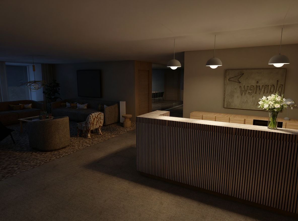 good but light up the lounge woith more light please place a thin translusent beige cirtain along the glass wall in the back inside the room