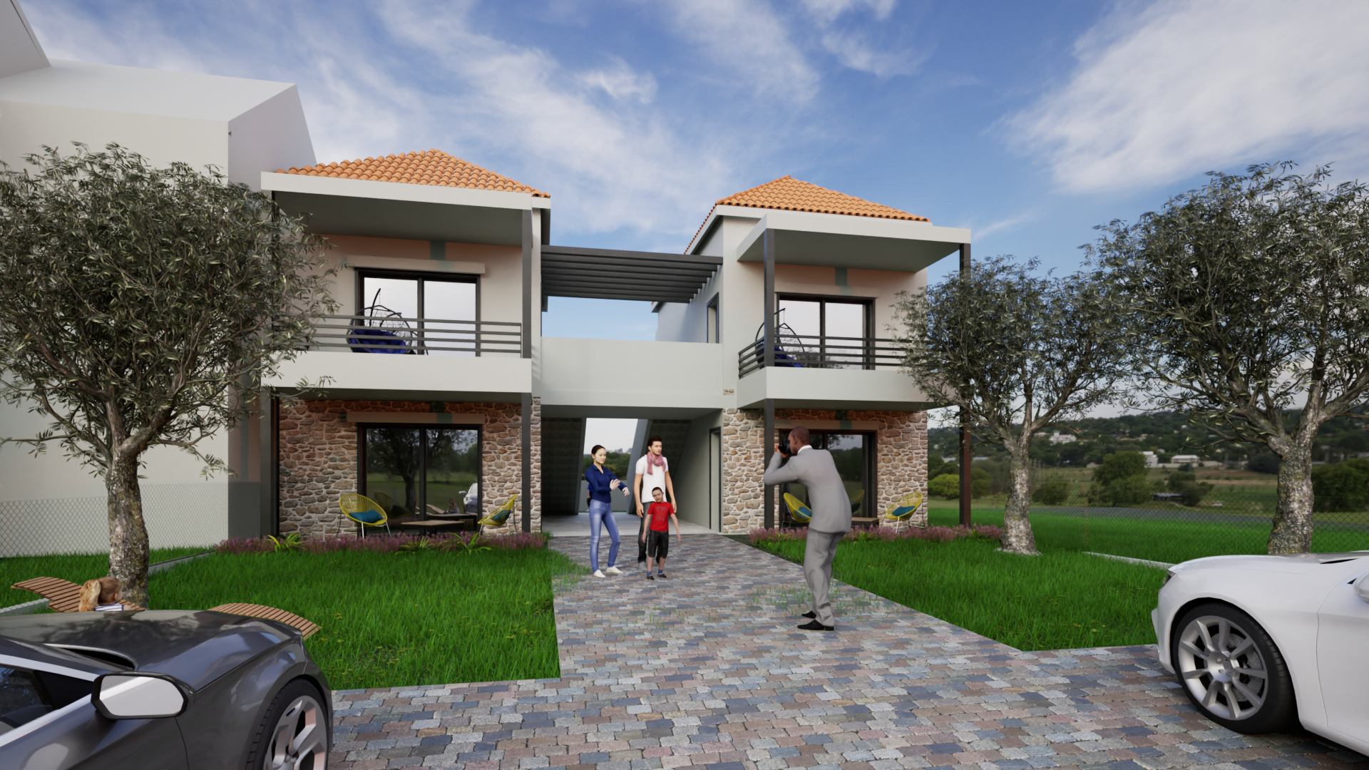 make it realistic add short mediterranean vegetation on the grass add curtains behind glazed window only