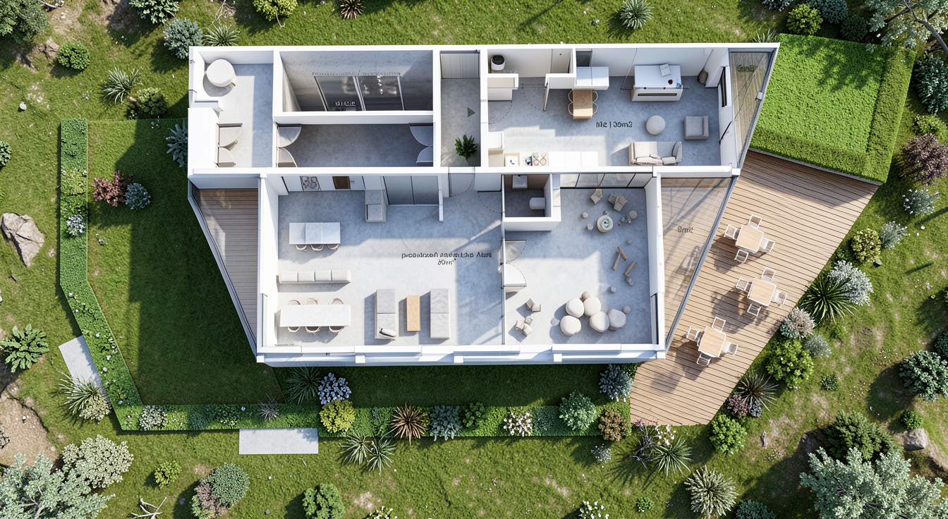 create a beautiful landscape rendering of a sprawling park area the map outlines lush green fields with varying shades of green to indicate different types of vegetation include dense forests in deep emerald and luscious meadows add gentle water bodies reflecting serene blues highlight paths and roads in soft earthy browns and grays the entire scene should be bordered with a subtle red outline capture a sunny tranquil atmosphere with clear skies enhancing the natural beauty of the landscape the rectangle objects in the image are holiday lodges of which there are 300 all nestled within the trees and along the roads