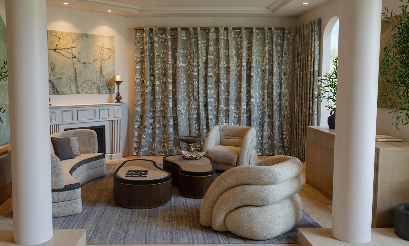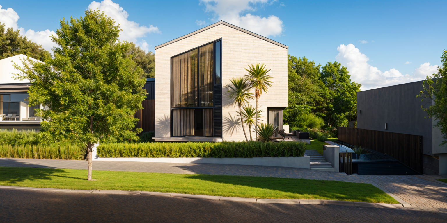 turn this building into a modern commercial retail building with gray metal panels glass and corten steel accents with califonia palm trees and landscape and cars parked in front