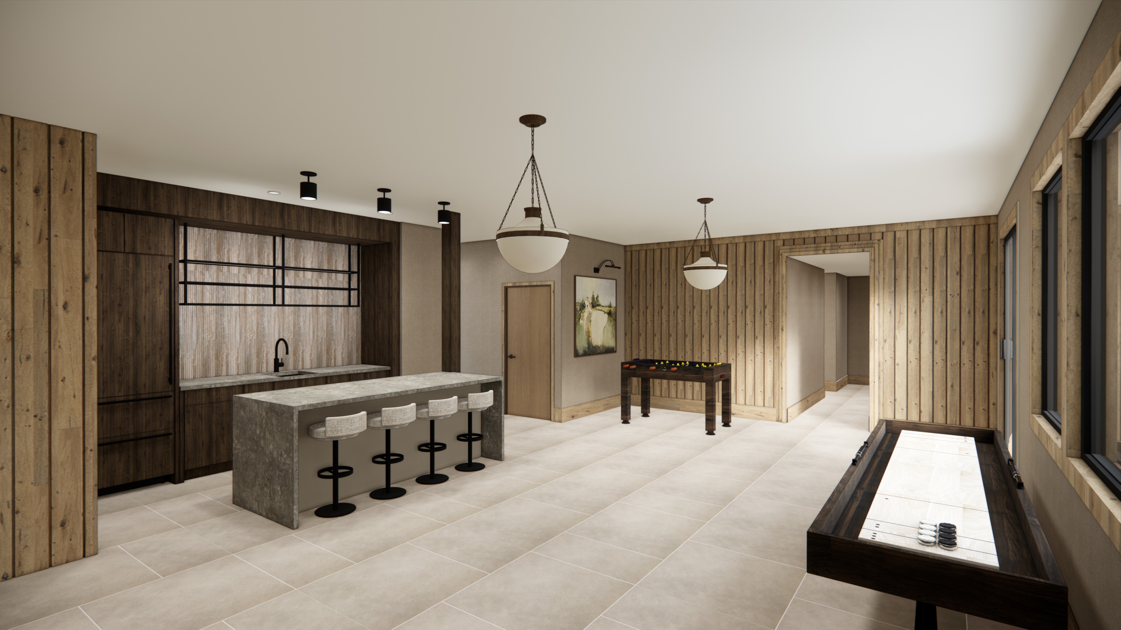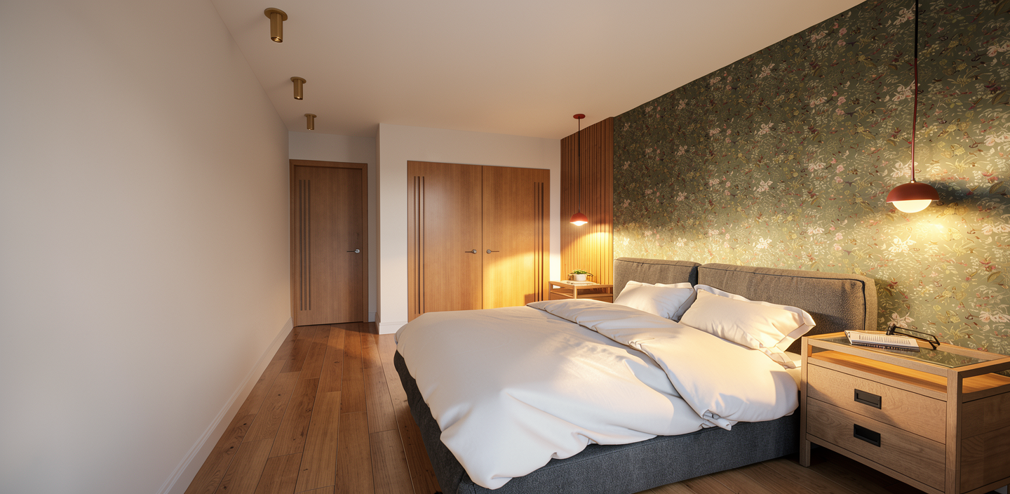 photorealistic enhancement of the provided architectural render preserve the exact architecture layout materials furniture placement and fixtures from the original image with no redesign or modifications the purpose is only to improve realism and lighting quality the floor should not be reflective and the room should be well illuminated