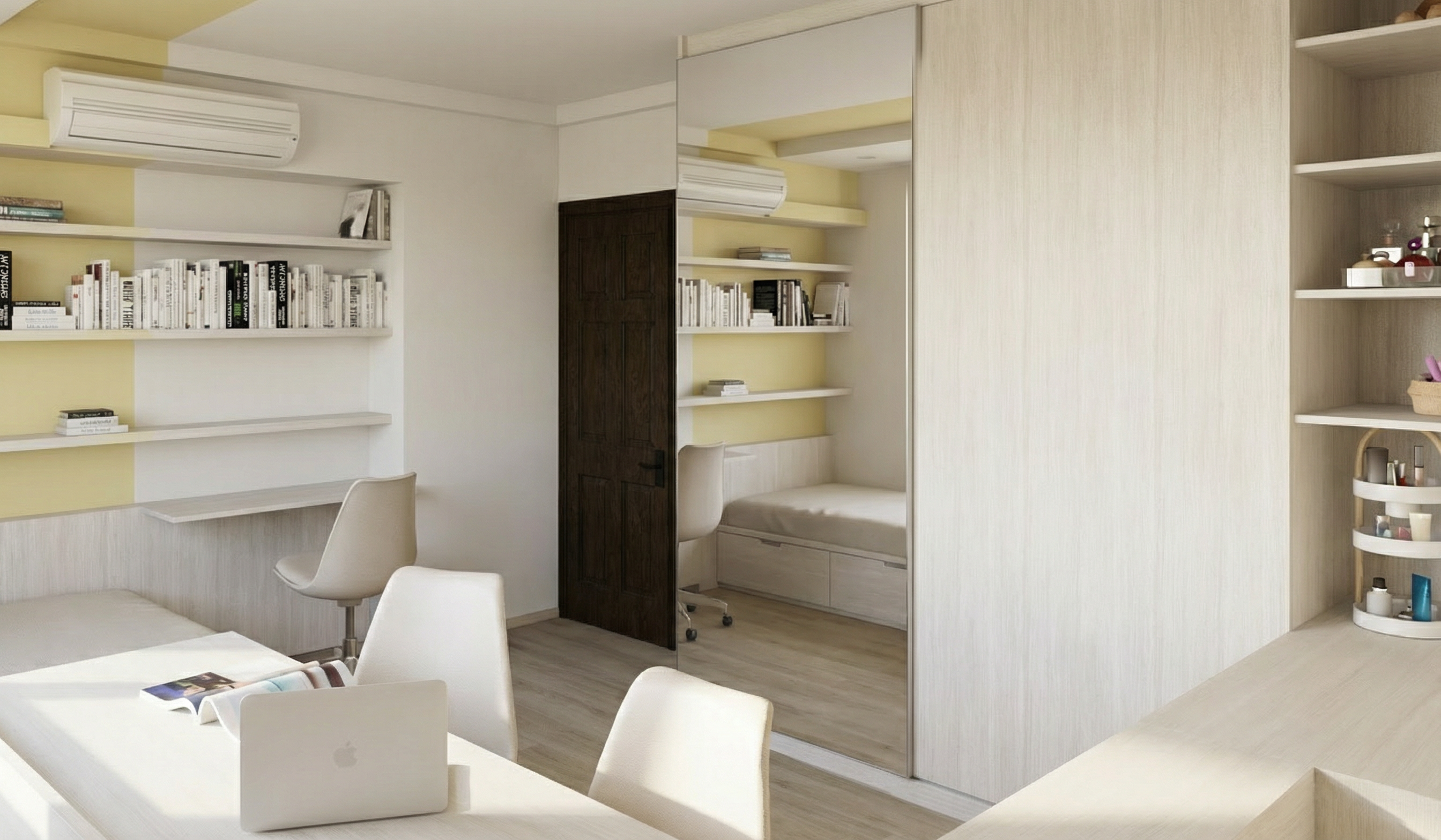 render this kitchen with light washed oak cabinets with black bar pull handles stainless steel appliances quartz countertop and backsplash with a very light grey vein light oak flooring walls painted white and base mlding glossy white