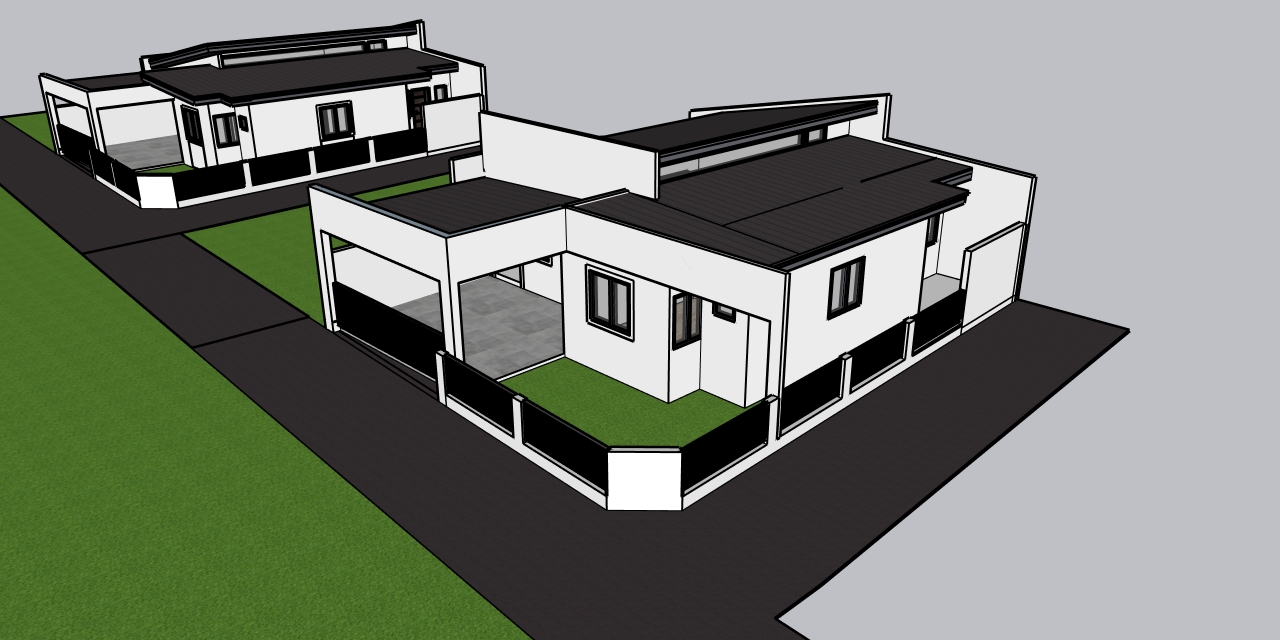 realistic architectural perspective of a modern building scene is set in warm afternoon light with soft natural shadows all wall lamps and interior lights are turned on except for the wall lamp near the window on the right which should be removed interior lighting should be clearly visible through the clerestory window creating a warm glow from above window moldings are smooth clean and plain white while the rest of the exterior walls use textured white paint for subtle contrast surround the building with lush green trees and landscaped foliage ensuring there is no house or structure visible at the back add a car entering from the left side of the frame partially visible as if just arriving include one person walking toward the entrance in a natural casual posture photorealistic materials sharp details global illumination high dynamic range 8k resolution