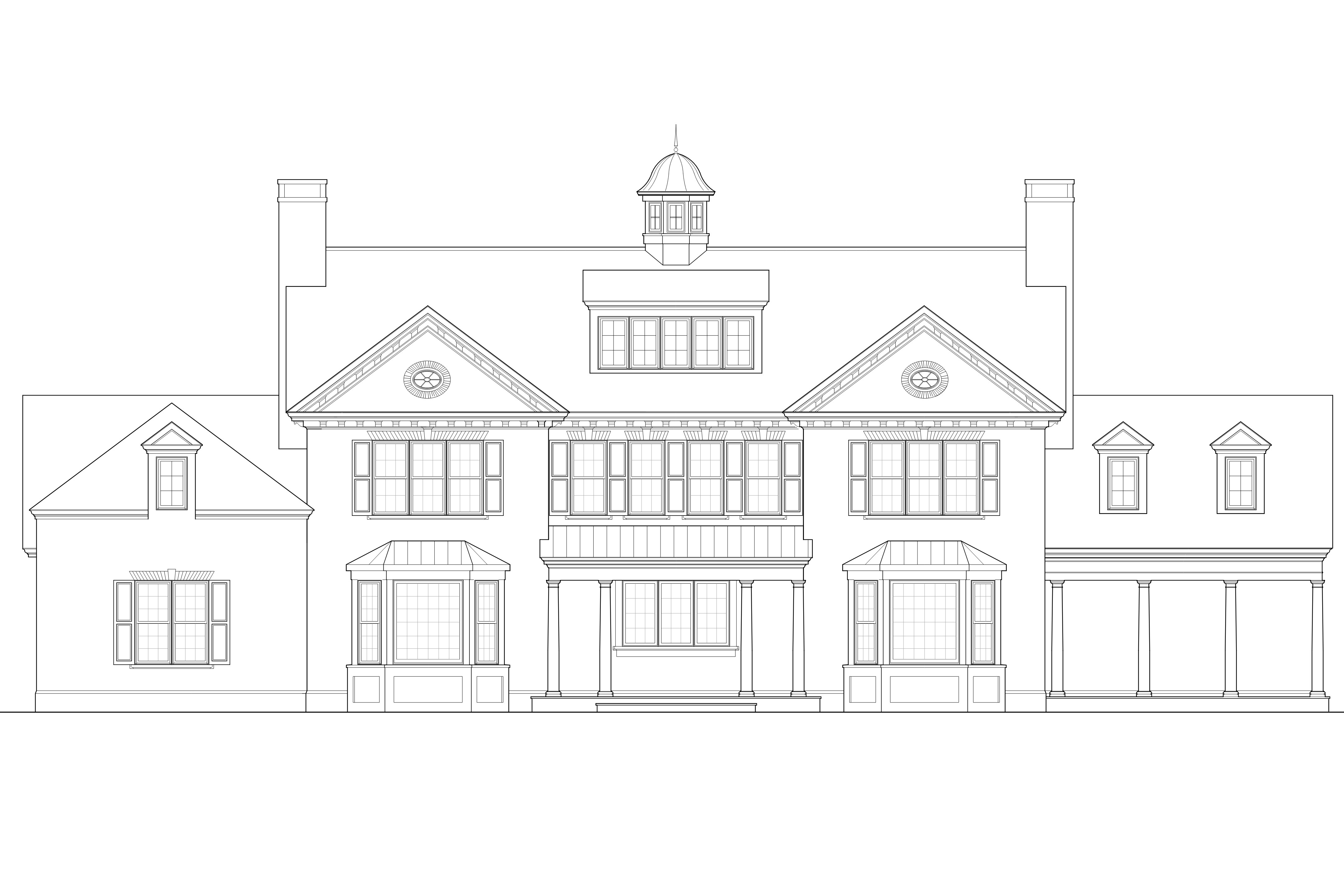 exterior shot exterior shot of a georgian style home with red brick white windows black shutters slate roof and landscaping in front of the house