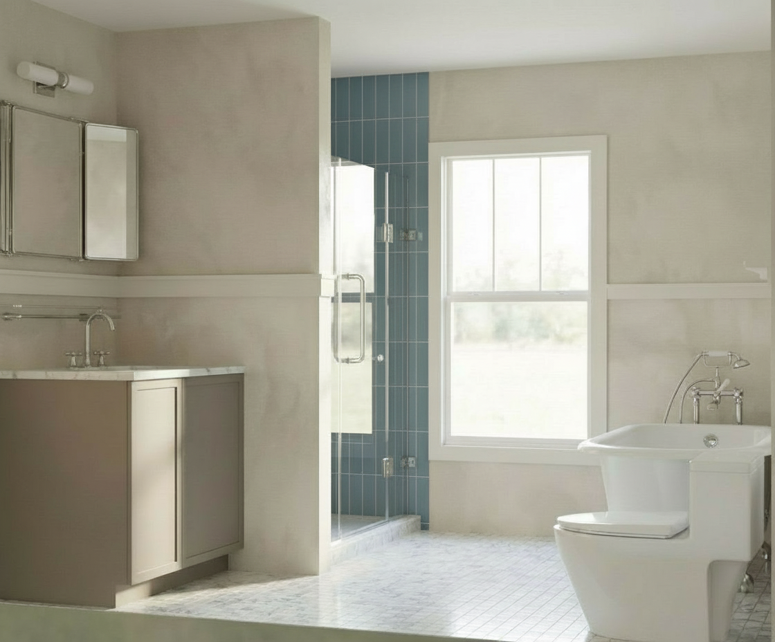 make the shower wall tile slightly lighter color