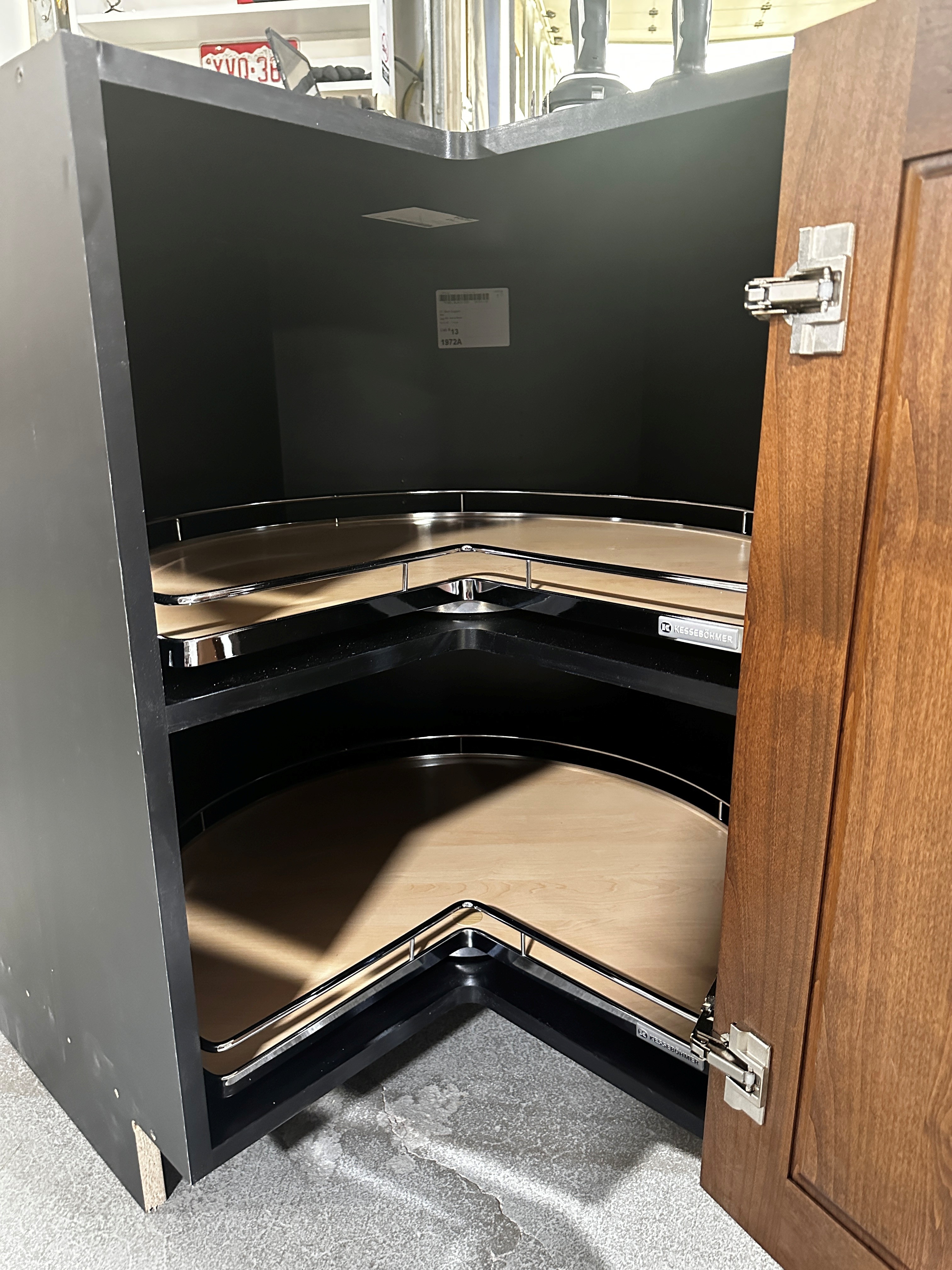 do not change the cabinets in any way preserve the exact cabinet colors materials finishes dimensions door and drawer styles hardware spacing alignment and all geometry exactly as shown do not alter the countertop shape backsplash appliances flooring lighting fixtures or wall structure only remove the construction materials clutter and mess from the scene clean the room and make it look finished and staged add a few simple tasteful home accessories appropriate for the style of the space but do not add or remove any furniture windows or architectural elements maintain the original lighting direction and realism enhance clarity and polish the photo while keeping the cabinetry and room design completely unchanged do not alter the lighting to keep the cabinet colors as they are in the image add cabinets on the sides to cover the black add a white quartz countertop add flooring add toe kick to match the cabinet front keep the perspective as is do not zoom out