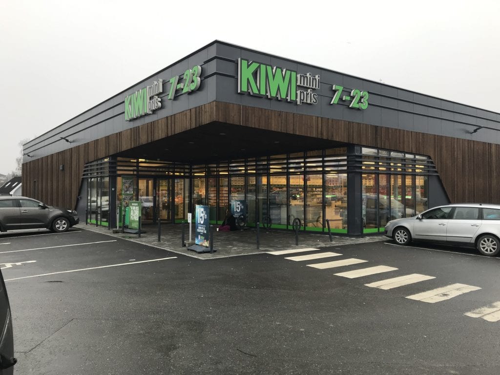 exterior shot parking lot in front of the store add a few cars sunny weather blue sky slightly overcast trees in the background add some cars in the parking lot