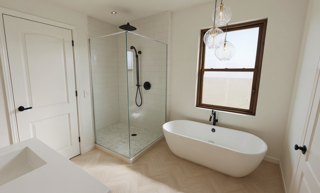 change all door handles to matte black finish keep lighting and overall layout unchanged but make sure the new fixtures blend naturally with the current design