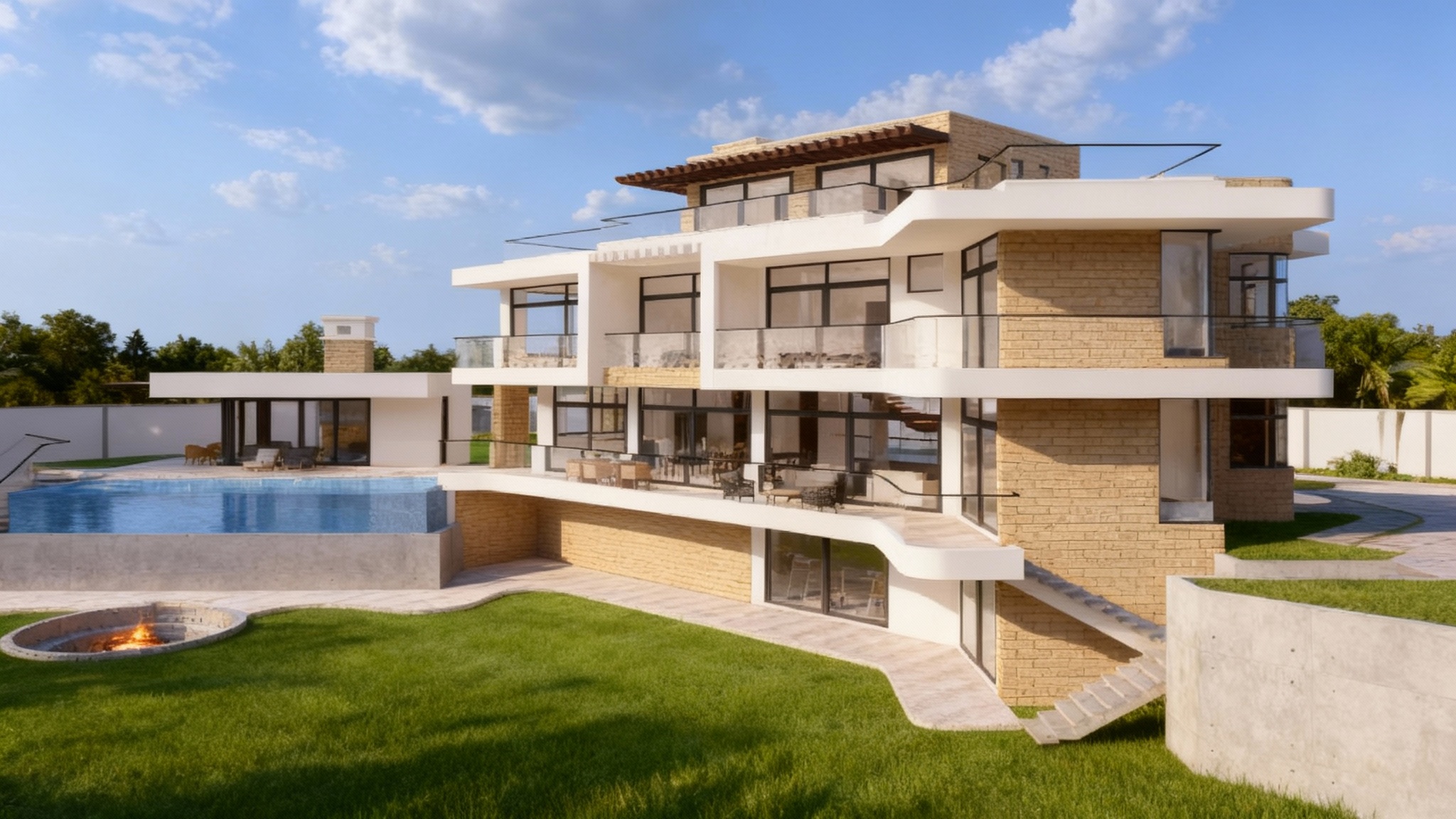 mountain modern villas is surrounded by a lot of trees bushes and flowers in the garden pool side