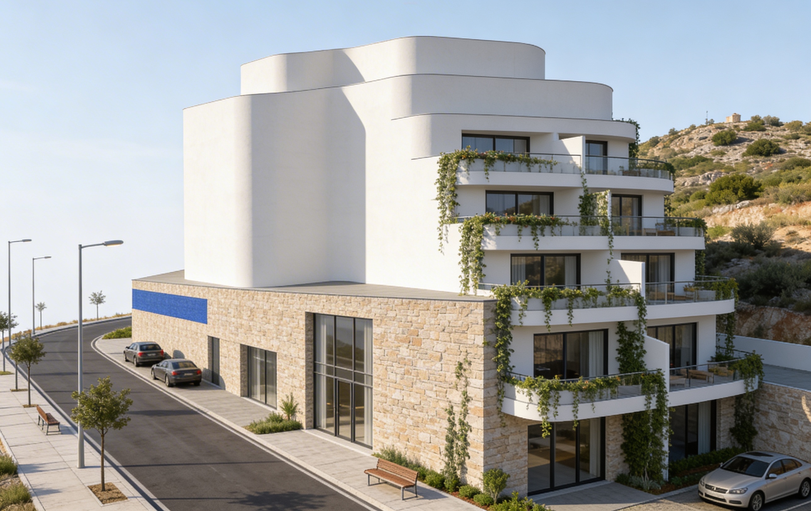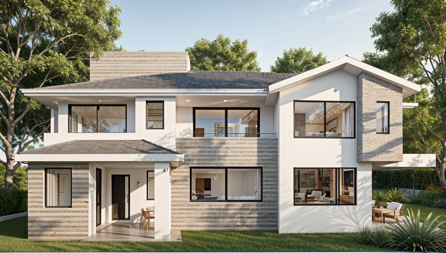 can you add some mediterranean pine trees beyond the house but not on the right