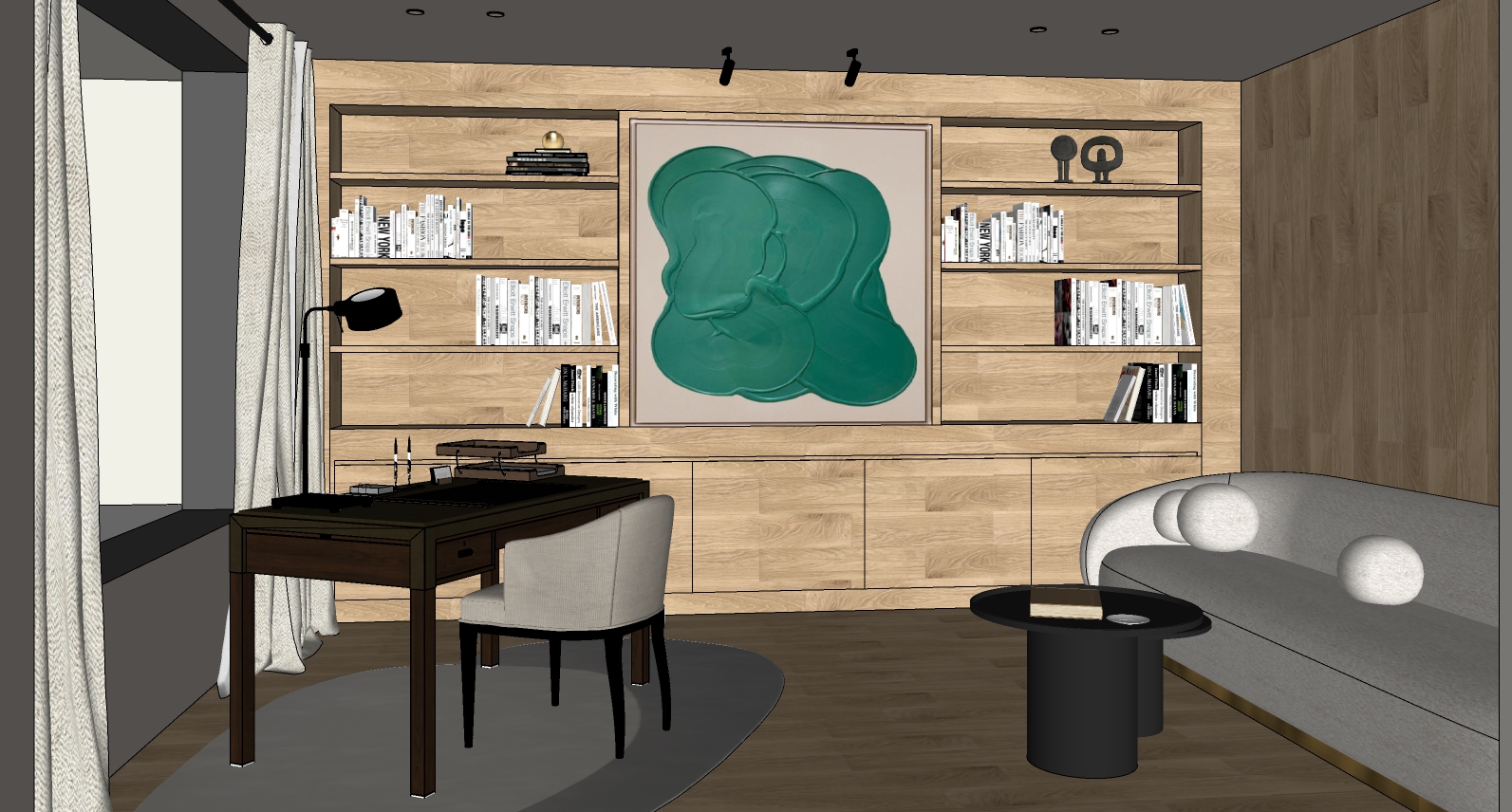 gira los focos de tal manera que iluminen hacia el cuadro la iluminacion general del render tiene que ser de dia