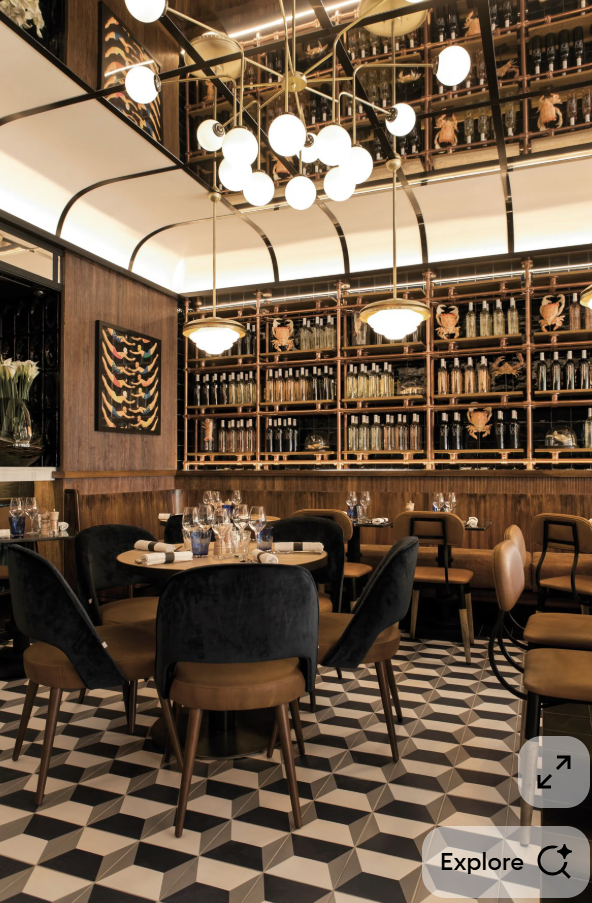 exterior shot he design must strictly follow and be based on the provided sketchup model preserving the exact architectural layout proportions dimensions camera angle and spatial composition from the original project a photorealistic 3d render of a luxury bakery the space features a glazed dining enclosure with booths tall windows flood the space with soft natural daylight casting realistic shadows interior design includes a mix of parisian and new york caf style bentwood chairs small round marble tables polished wood accents and subtle gold finishes overhead decorative ceiling details and large statement pendant lights create warm bakery lighting with a soft amber glow add cinematic depth of field global illumination ray traced reflections and realistic shadows ultra detailed photorealistic 8k resolution cinematic composition volumetric lighting high dynamic range architectural visualization quality the bakery it s called mo s bagels deli