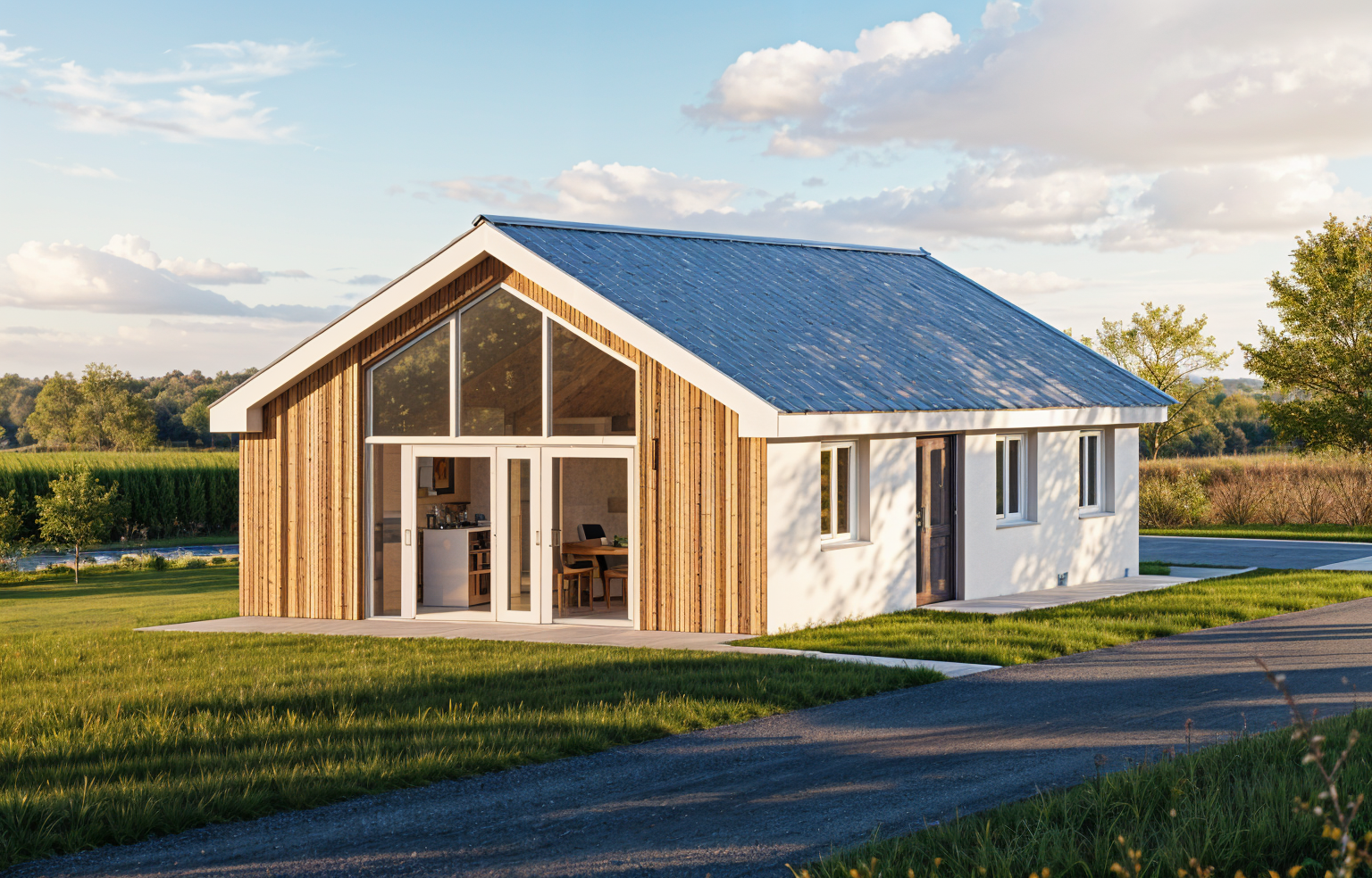 crea una imagne fotorealista a partir de este sketchup pon los muebles en color azul grisaceo decoralo con productos de limpieza es una zona de lavado