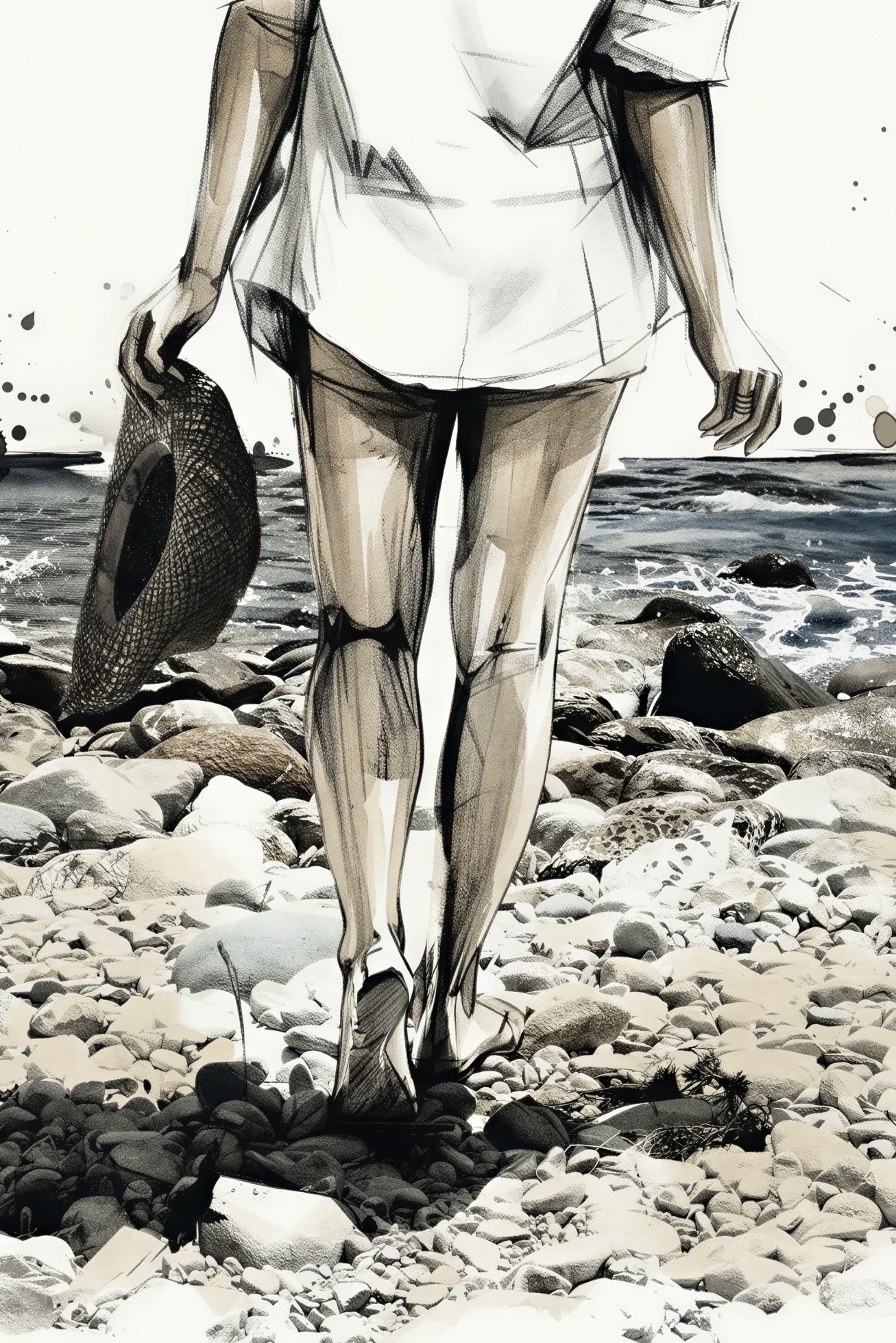 keep the legs walking to the water don t change composition don t copy the reference image use only the style of the reference
