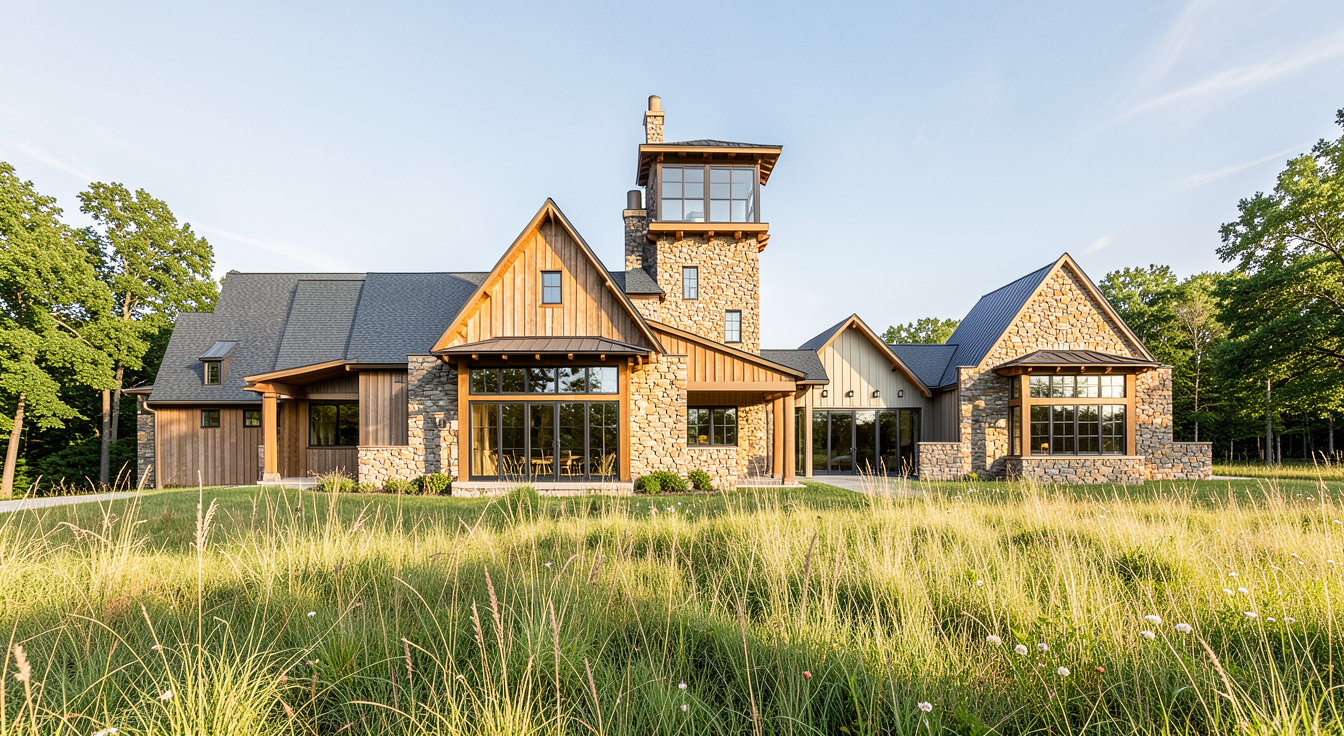 render this cad drawing with dark green paint a black metal roof black window trim there are 6 windows