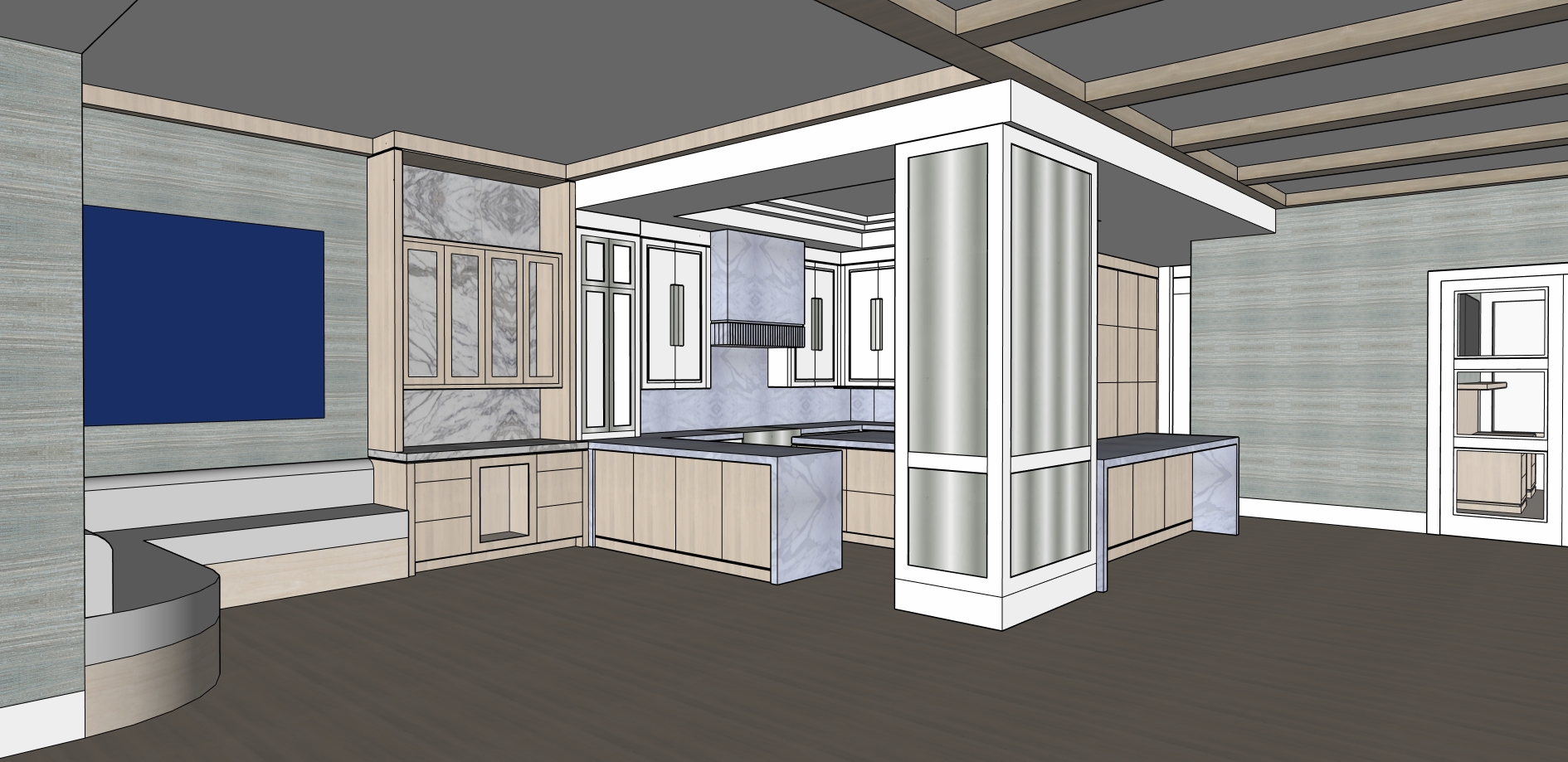 transform the provided elevation into a hyper realistic interior photograph that is indistinguishable from a real professionally shot interior design photograph this must read as a real space captured by a camera not a rendering not a visualization not architectural cg not concept art and not an illustration geometry lock non negotiable preserve the exact original geometry layout proportions ceiling details wall depths panel divisions openings doors cabinetry locations millwork dimensions built ins and circulation paths with zero architectural changes nothing may move scale simplify or be reinterpreted geometry must remain absolutely unchanged camera derivation critical derive the camera position height angle and framing strictly from the uploaded elevation eye level interior photography centered or naturally balanced composition 24 35mm interior lens feel no dramatic angles no stylized framing do not reuse or approximate camera framing from any previous image remove all drawing artifacts completely remove all linework cad edges drafting outlines diagrammatic shapes sketch artifacts nothing may appear outlined flat schematic or illustrative the elevation must be visually reinterpreted as a finished real interior photograph material realism rules wood if present smooth solid plank material extremely subtle restrained grain matte or soft satin finish only no graphic patterns no decorative striping no visual noise wood must absorb light gently never glossy or sharp fabric upholstery if present soft compression subtle seams gentle shadowing natural fabric texture no flat color blocks stone slabs if present light natural veining soft organic variation low contrast no symmetry no bold or busy patterns stone must feel heavy and grounded walls fine surface texture slight tonal variation never flat paint edge construction realism all edges corners joints and transitions must be softly broken and physically realistic no razor sharp corners no cgi perfect edges slight construction tolerances only everything must read as fabricated installed and dimensional lighting photographic behavior lighting must behave like real high end interior photography natural daylight only unless otherwise specified realistic light bounce gentle shadow falloff uneven exposure distribution subtle brightness variation across surfaces avoid studio lighting uniform illumination over clean exposure global illumination look slight softness is preferred over sharpness camera image imperfections very important introduce subtle photographic characteristics gentle lens softness micro exposure variation natural contrast roll off mild atmospheric depth primary plane sharp background slightly softer the image must feel captured not generated absolute constraints no creative interpretation no stylization no exaggeration no added or removed elements any deviation from the original elevation geometry or intent is unacceptable negative prompt always include architectural rendering 3d visualization cgi unreal engine octane vray sketchup look flat textures graphic lines outlined edges over sharpened studio lighting concept art illustration ai look plastic materials glossy wood high contrast grain perfect symmetry keep design as shown in the picture keep the design as it is in image light cabinets are white and brown cabinets are white oak keep design in the image as it is including materials