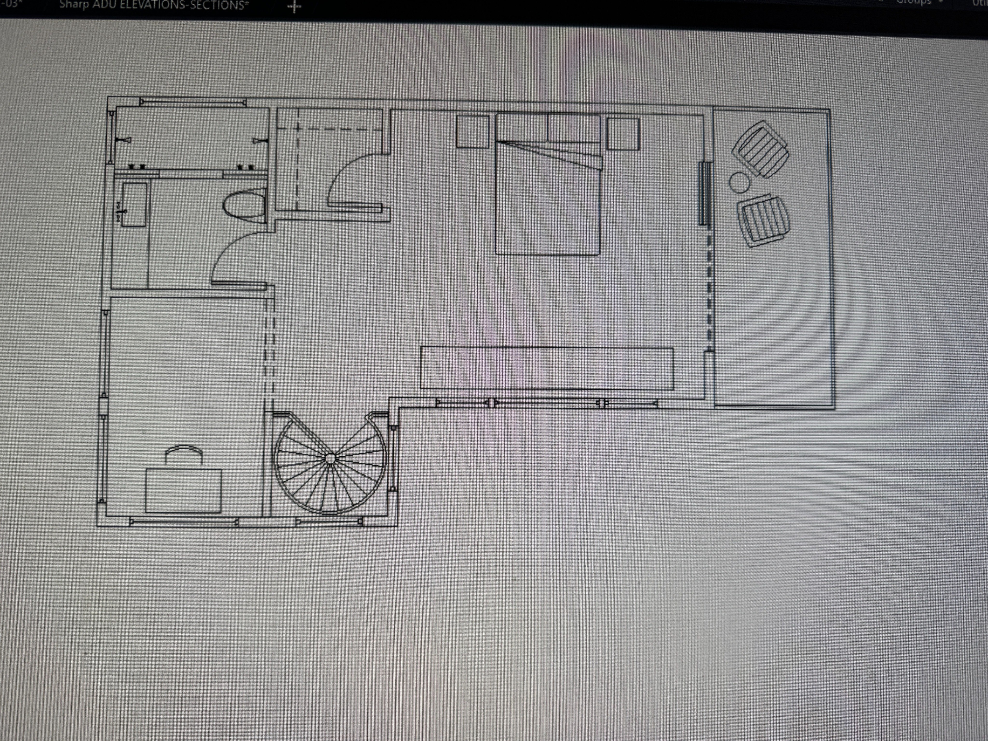 interior shot create a beautifully rendered 3d floor plan of a modern apartment use off white for the walls and structure bright yellow for the furniture outlines and tan for decorative elements like pillows and accessories the spiral staircase should be highlighted in mauve provide a warm inviting atmosphere with soft ambient lighting and shadows to add depth architecture