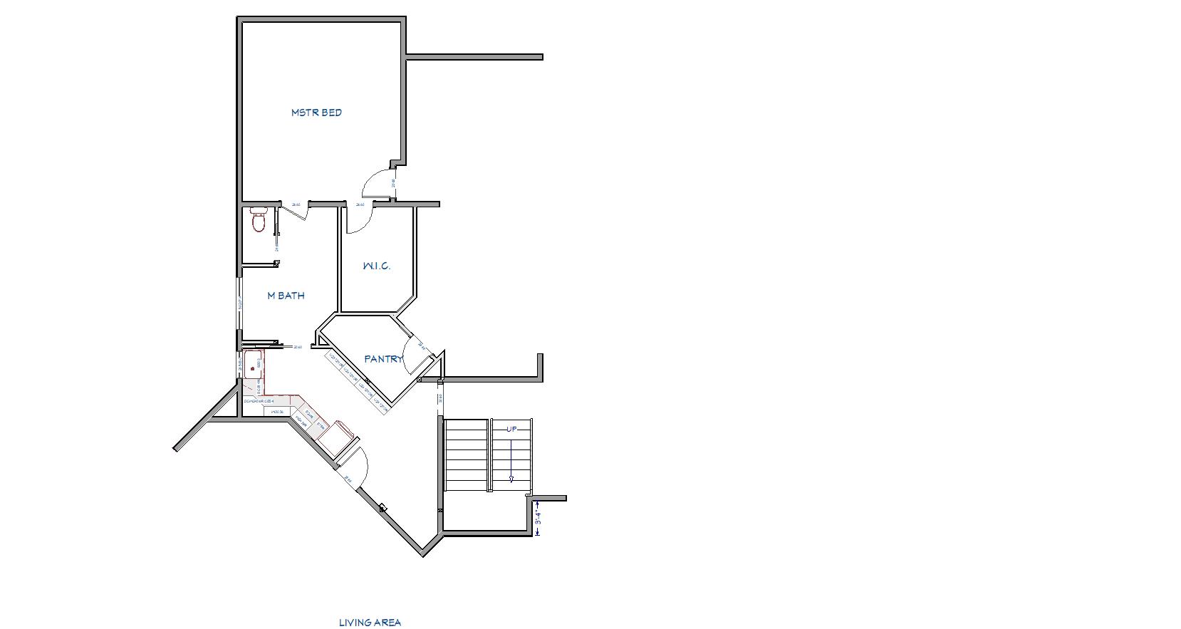 convert this floor plan into a realistic isometric 3d view of a full house show the space from an elevated angle with furniture walls and details visible create a detailed architectural rendering of a floor plan featuring a master bedroom master bath walk in closet pantry family area and living area use soft pastel colors for a cozy atmosphere the walls are a light beige the floors are light oak wood the bedroom walls are soft lavender with white trim the bathroom is in pastel blue tiles the pantry is a sage green and the living area is in a warm peach tone include natural light pouring in through large windows creating a serene and inviting ambiance use the same furniture as shows on the plan do not change the orientation of the floorplan
