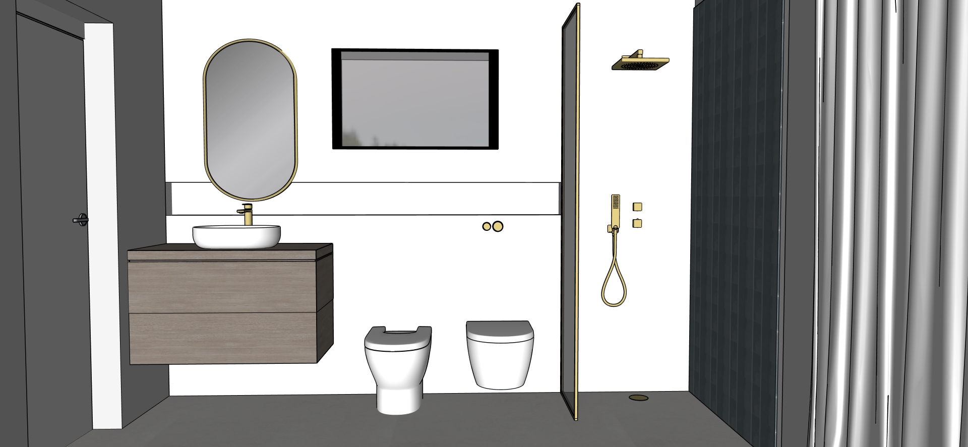 crea un rennder de un ba o acogedor pero contemporaneo con un revestimeinto un color azul mar
