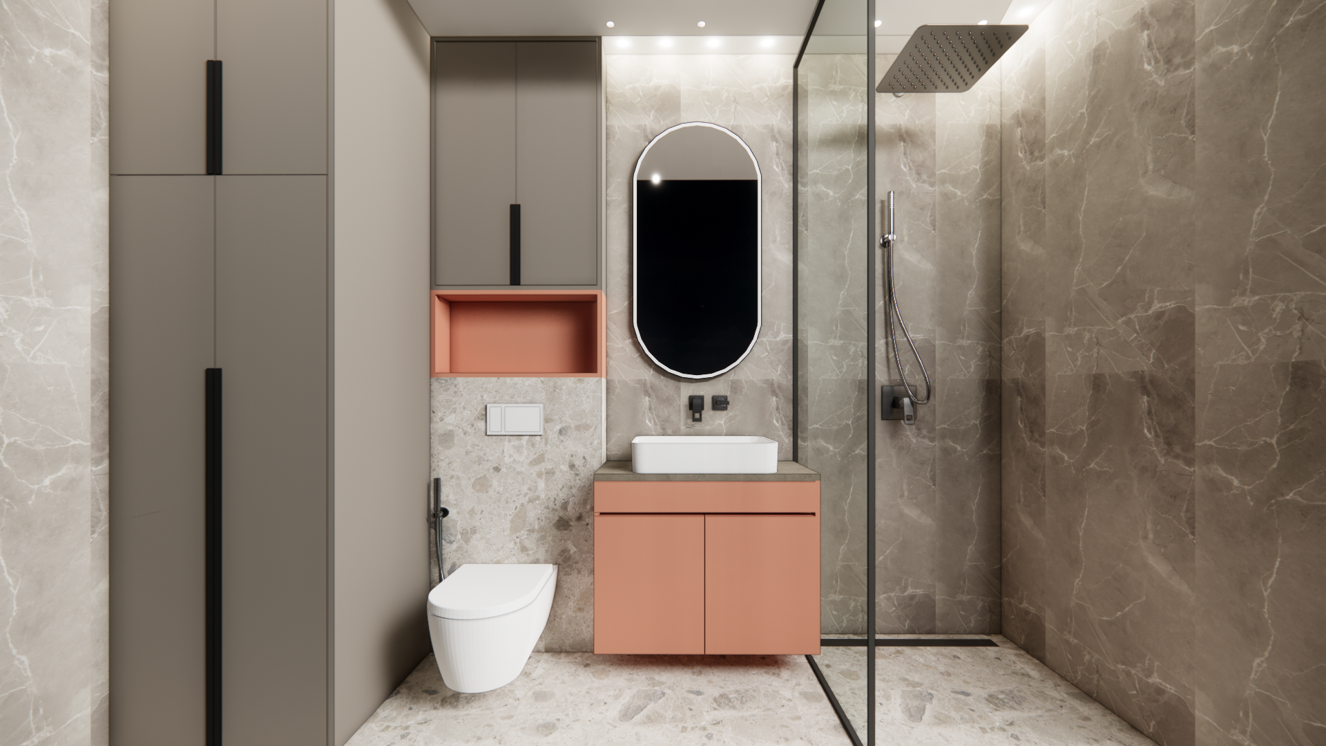 everything is exactly the same just with better lighting there is no lighting in the open shelf above the toilet there is no glass on the front side of the shower cabin