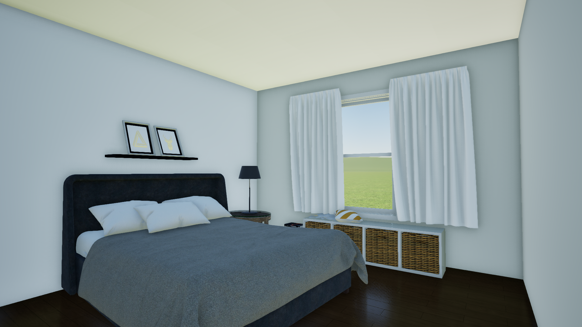 realistic render of bedroom in a transitional style