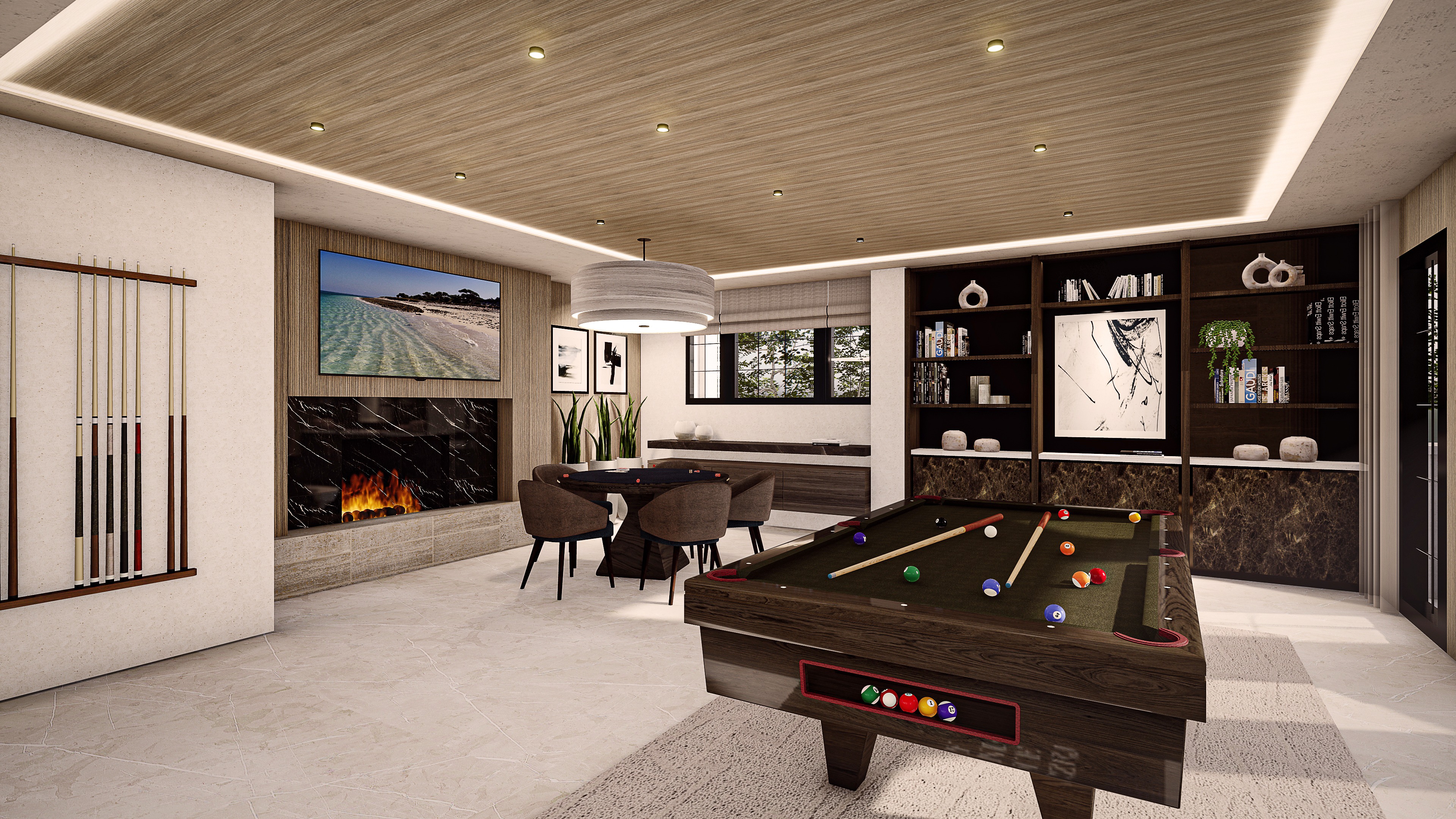 change pool table to a modern sleek pool table with solid dark walnut