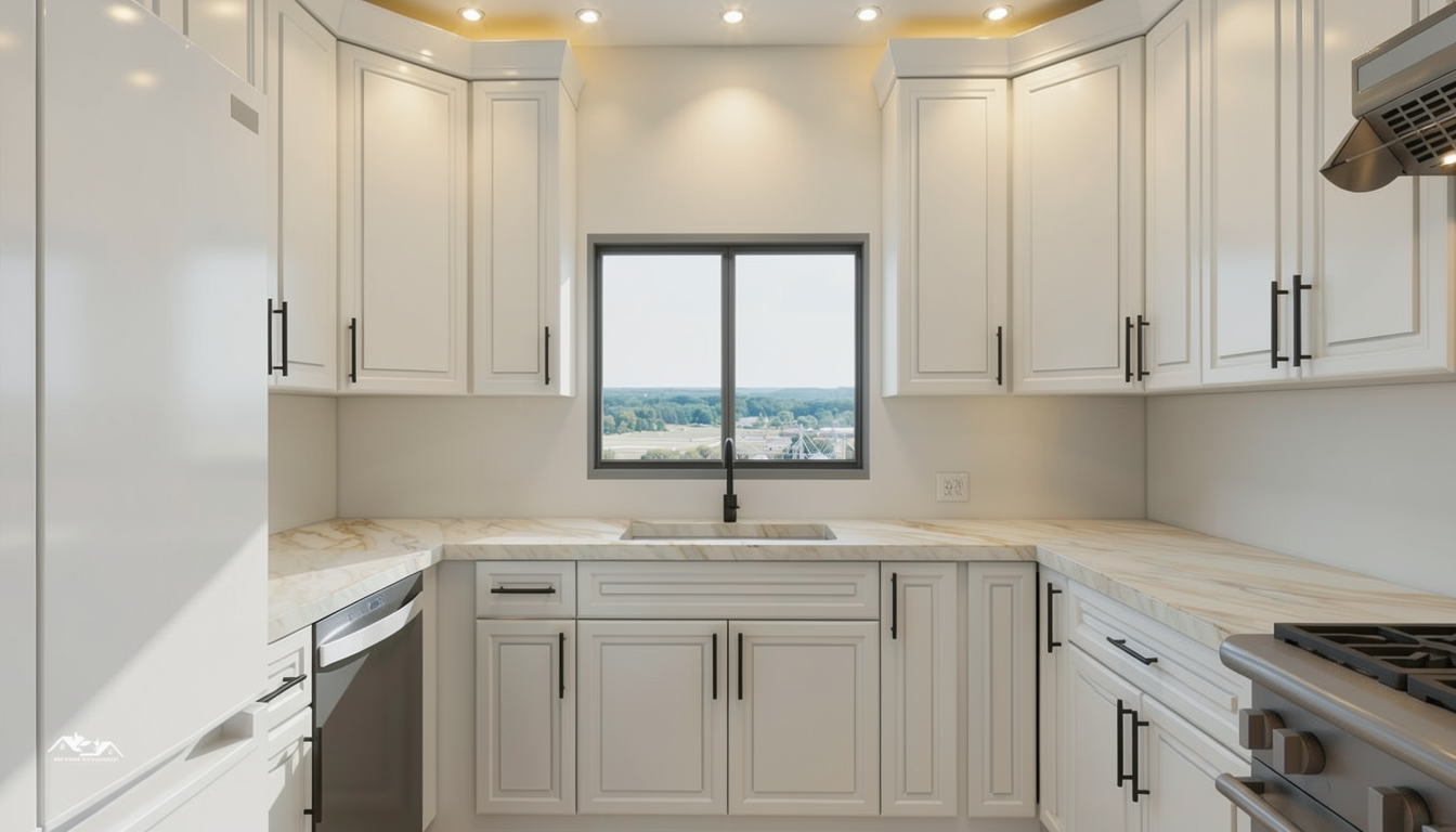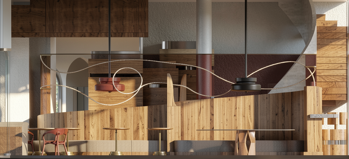 create realistic shadows reflect light off the quartzite counters green white and gray remove human figures remove watermarks the bottom left is a private lounge ensure that the banquette seating isn t mistaken for foliage create noon shadows the top left area is not counters but bathroom tile there is no turf flooring please examine the floor details to ensure the rendering is accurate the stairs are spiraled in the middle ensure that the shadows reflect that properly the shadows need to be less afternoon and more noon