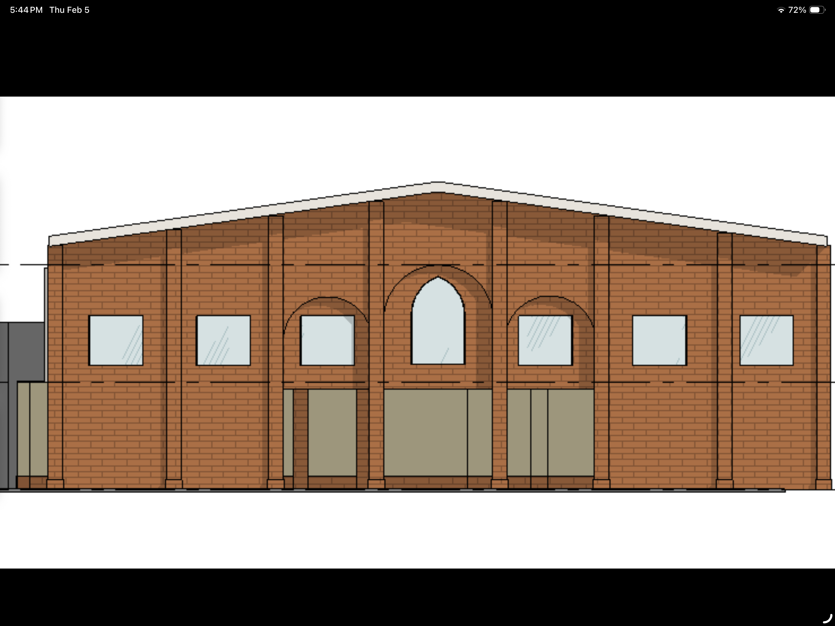 exterior shot generate a rendering using architectural elements materials and details from the mood board width dimension of building column placement to remain exact