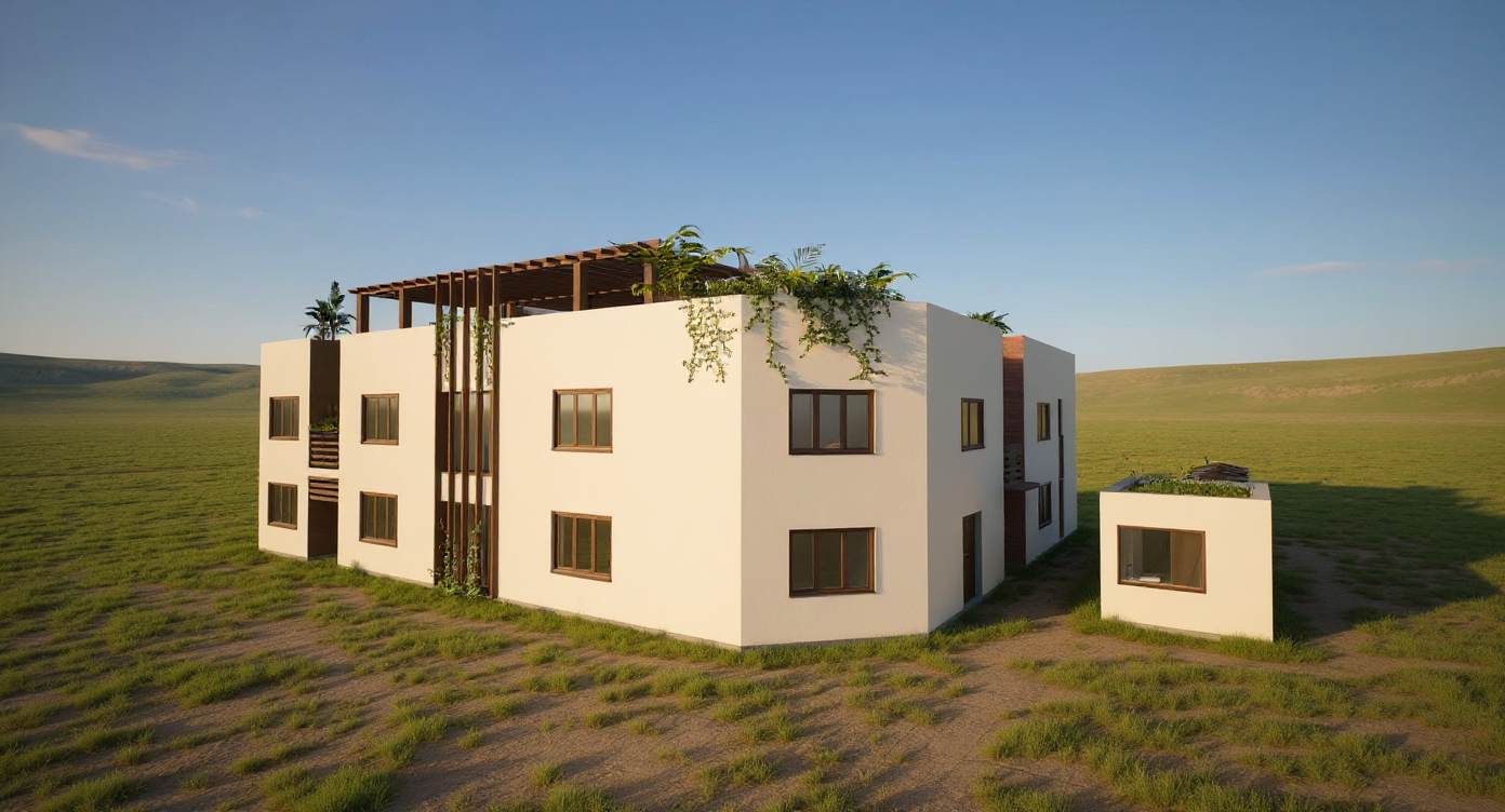 render the building in this image with soft textures the roof is a black standing seam roof the walls are light wood like a cabin render the image so it architectural dimension overlay make it look like a technical sketch make the red black